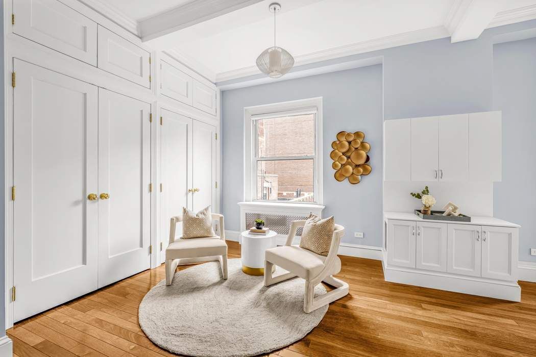 Once 12 Rooms and now thoughtfully reimagined into 9, this home seamlessly marries the elegance of prewar architecture with the sophistication of bespoke modern finishes. Perched high above Park Avenue, Residence 14BC is a grand home of approximately 3,000 square feet. The expansive layout and move-in ready renovation includes 5 Bedrooms, 4.5 Bathrooms, a Great Room, Formal Dining Room, Breakfast/Media Room and a Kitchen with Pantry—forming a residence that is as impressive in scale as it is refined in detail. The Foyer features elegant Wall Paneling, refined Crown Moldings, and masterful Coffered-Beamed Ceilings that highlight the home’s prewar character. Brazilian chestnut floors, installed with soundproofing for quiet elegance, flow throughout the residence and lead into the grand layout. Just off the Foyer, a beautifully appointed Powder Room completes the introduction. The Great Room serves as the centerpiece of the home and flows seamlessly into the richly appointed Formal Dining Room. Both of these gathering spaces are anchored by their own Wood Burning Fireplaces. The Great Room Fireplace Mantel is completed in an extraordinary gemstone amethyst finish with custom integrated lighting allowing for a timeless and elegant statement. The Dining Room Wood Burning Fireplace is white Thassos marble and is paired with Breccia de Vendome with a matching hearth creating a dazzling, one-of-a-kind focal point. The Primary Suite occupies its own Private South Wing with an expansive double-sized Bedroom, dressing spaces, and two luxurious marble Bathrooms, one with polished Mother of Pearl Quartz and the other with Naxos Crystal. Both have radiant heated floors. A vented Laundry Closet and Private Office/Study are also in this wing and offer a true private retreat. The North Wing includes a Formal Dining Room , Kitchen & Pantry, Breakfast/Media Room, 2 Bedrooms and a Staff Room. Bathrooms are finished with Port Laurent, Crème Fedora, and Jerusalem Gold marbles, each contributing its own distinct personality yet unified by a consistent level of refinement. At the heart of the home, the Kitchen and adjoining Pantry blends form and function. Silver-blue slate floors ground the space, while Azul Aran granite countertops and custom cabinetry frame a suite of high-end appliances, including: a Six-Burner Garland Range and Oven with vented Hood, Subzero Refrigerator, and Miele Dishwasher. The Windowed Kitchen reflects the same craftsmanship found throughout the home. Every detail in Residence 14BC is an ode to thoughtful customization. Other very notable highlights include: a Central Air Conditioning System, Through the Wall Air-Conditioning Units, Sonos Home A/V System, Custom Lighting, Custom cabinetry, bespoke Bookshelves, custom Closets, Oversized windows that capture incredible eastern light. This is more than an apartment — it is Park Avenue Perfection. Set within a distinguished Prewar Cooperative with White-Glove service, it offers the best of Upper East Side living. Just moments from Central Park, Museum Mile, and Manhattan’s finest dining and shopping. Residence 14BC is that rare opportunity: a home of scale, character, and beauty, reimagined for modern life and ready to be treasured for generations.