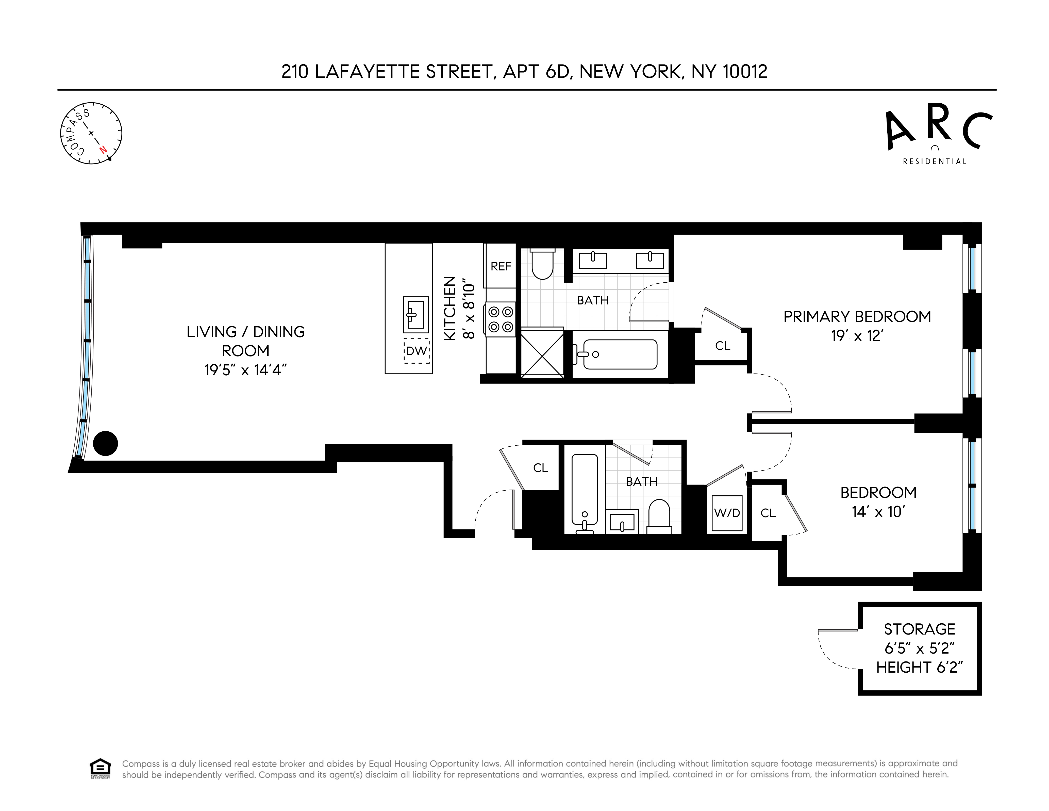 • Start each day watching the sun rise over the Williamsburg Bridge from your spacious living room. Ideally located where SoHo meets NoLita, this exceptional residence boasts open city and river views and abundant eastern light throughout the day. Step outside to some of the city's most coveted cafés, restaurants, and boutiques, with the subway just one block away. This two-bedroom, two-bath residence is a refined, modern take on loft living. Both bedrooms are well proportioned. The primary boasts a five-fixture en-suite bath offering a deep soaking tub, separate glass-enclosed shower and a double vanity. The open living and entertaining space is anchored by a chef’s kitchen appointed with Venentino marble countertops and backsplash, an island breakfast bar, and premium stainless steel appliances by Bosch, Thermador, and Sub-Zero. Both bedrooms offer generous closet space, while the spa-like second bath features an oversized Kohler soaking tub surrounded by Blue de Saviore marble and a Kohler sink. Additional highlights include a Bosch washer and dryer and solid Nordic Ash wood flooring throughout. The 11-story undulating curved tower is a testament to harmonized form and function. Noted architect, Richard Gluckman has designed the interiors that carry through the same precepts of movement, contrast and texture. Andre Balazs and Cape Advisors have realized the architect’s vision and complemented its elegance with the conveniences of a new full service condo in a SoHo location that couldn’t be more desirable. This desirable condo features 24 hour concierge service, live-in resident manager, fitness center, and additional entrance at Crosby Street. A large deeded storage unit conveys with this exceptional home. $294.25/mo capital assessment until Dec 2026.