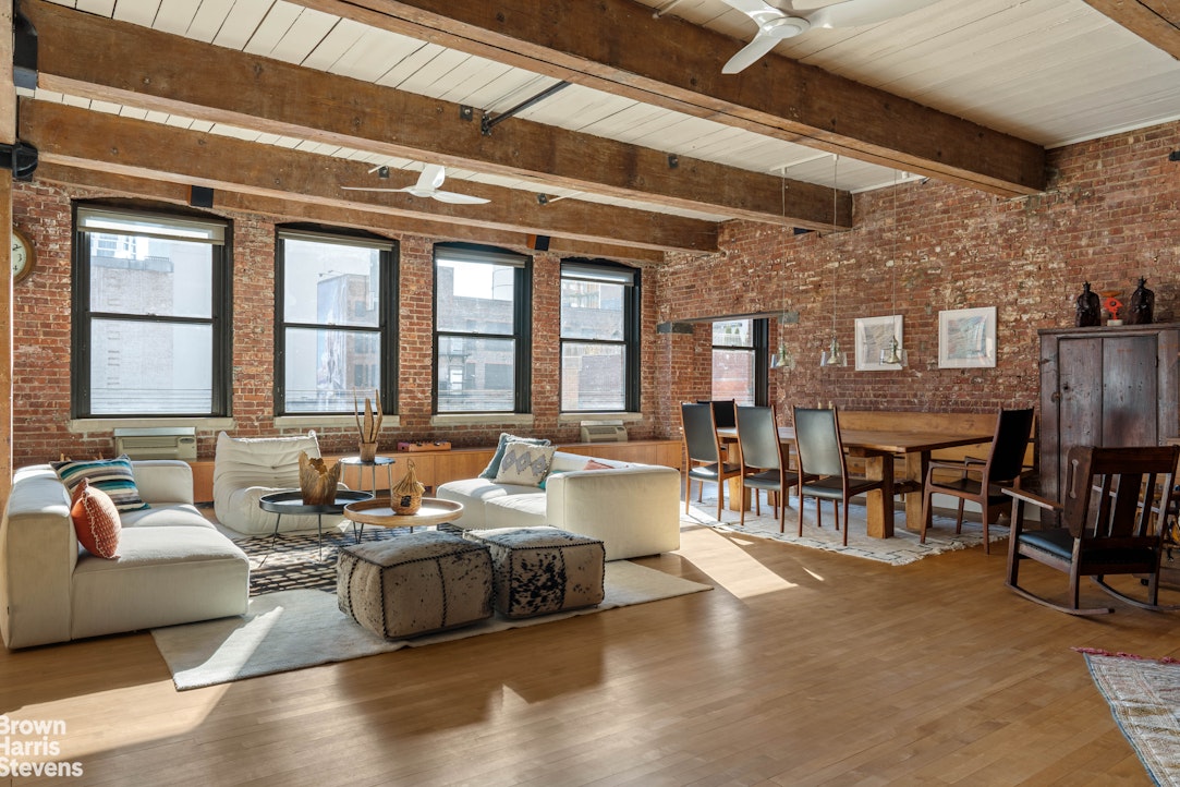 Welcome to Residence 5A at The Spears Building - a former furniture warehouse constructed in 1880, now an intimate loft condominium abutting the High Line. Rich in provenance and architectural detail, this extraordinary 3,033-square-foot home embodies authentic industrial character with exposed brick walls, massive first growth wood beams and columns, cast iron column caps, high wood plank ceilings, and 13 oversized windows.