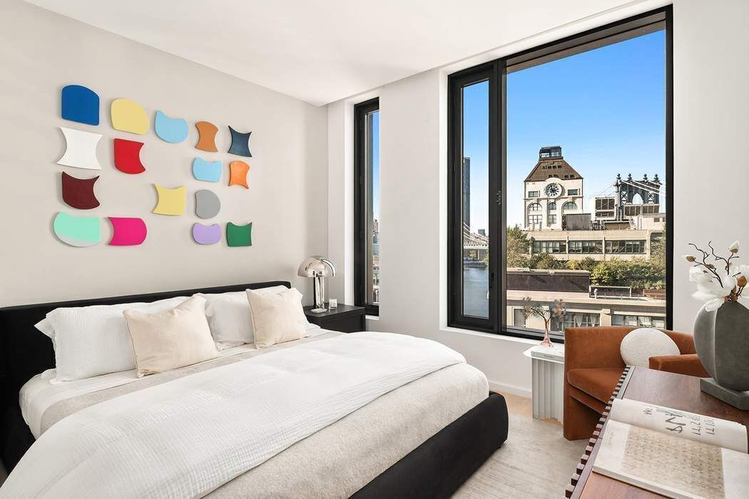 • Immediate Occupancy. On-site model residences now available to tour by appointment. Overlooking Front Street, Residence 17C is a two-bedroom, two-and-a-half-bathroom corner residence with 1,471 SF of elegant living space. Upon entry, the foyer introduces an open and light-filled living and entertaining space. The impeccably tailored Workstead-designed kitchen features a statement island with inlaid Fior di Bosco stone slab and chamfered edges, raked maple cabinetry paired with satin nickel hardware and top-of-the-line Gaggenau appliances. The dining area boasts floor-to-ceiling round corner windows and four full-height pantry spaces for additional storage. The primary suite is complemented by an en-suite bathroom with Agglo Ceppo honed stone walls, flooring and countertops, custom brushed nickel shower controls, an undermount tub, and a custom-slatted white maple double vanity with satin nickel pulls, deck-mounted faucets and oak controls, the oasis also includes an impressive walk-in closet. The secondary bedroom includes a spacious closet and an en-suite bathroom featuring mosaic flooring, an undermount tub with brushed nickel fixtures, custom vanity in maple and a round mirrored medicine cabinet. Located close to the foyer, the powder room has a pedestal vanity in African St. Laurent stone with a honed finish and chamfered edges, a hidden mirror, and white maple-clad walls. The laundry room with LG washer & dryer is discretely located off the bedroom hallway and completes this offering. Olympia is a modern interpretation of its surroundings. Rising tall from the heart of historic Dumbo, Olympia offers expansive views of the sun-drenched harbor and Lower Manhattan skyline from the highest crest in the neighborhood. With thoughtful exteriors by Hill West Architects and interiors by Workstead, the 76 homes reflect a sense of scale and rhythm, and a palette of colors and materials that is grounded in the maritime and industrial heritage of Dumbo's waterfront. Olympia is designed to maximize comfort and convenience, boasting over 38,000 SF of indoor and outdoor services and amenities spread over 3 levels. The Garden level features our ground floor amenities. Through a private entry court, a contemporary porte coche`re welcomes you to a sheltered vestibule, and to the building’s triple-height lobby. The fully serviced lobby features a sculpture by Jacob Hashimoto and floor-to-ceiling window walls. Adjoining the lobby is the private garden lounge, perfect for reading a book, while overlooking the MPFP-landscaped Gair Gardens. Located in the building’s lower level, The Club is all about fun and fitness, complete with a game lounge, bar, two-lane bowling alley, state-of-the-art fitness center, spin studio, boxing gym, private locker rooms and maritime-themed kid’s playroom. The Bridge level of Olympia is located on the 10th floor and offers a variety of indoor and outdoor amenities dedicated to recreation and relaxation. Features include a 60’ indoor lap pool, wellness amenities, juice bar, a 58’ outdoor pool and hot tub, cabanas, barbecue areas, children’s ship-inspired playground & waterpark, and a full-size tennis court overlooking the Brooklyn Bridge, lower Manhattan and beyond. Additional services include private on-site parking available for rent or purchase, 24-hour doorman and concierge, package room with refrigerated storage, bicycle storage and private residential storage available for purchase. Sponsor: Fortis Dumbo Acquisition, LLC, 45 Main Street, Suite 800, Brooklyn, NY 11201; Sponsor makes no representation or warranties except as may be set forth in the offering plan filed with the NYS Department of Law. The complete offering terms are in an OP available from sponsor. NYS Department of Law File No. CD20-0174. Equal Housing Opportunity. Co-exclusive.