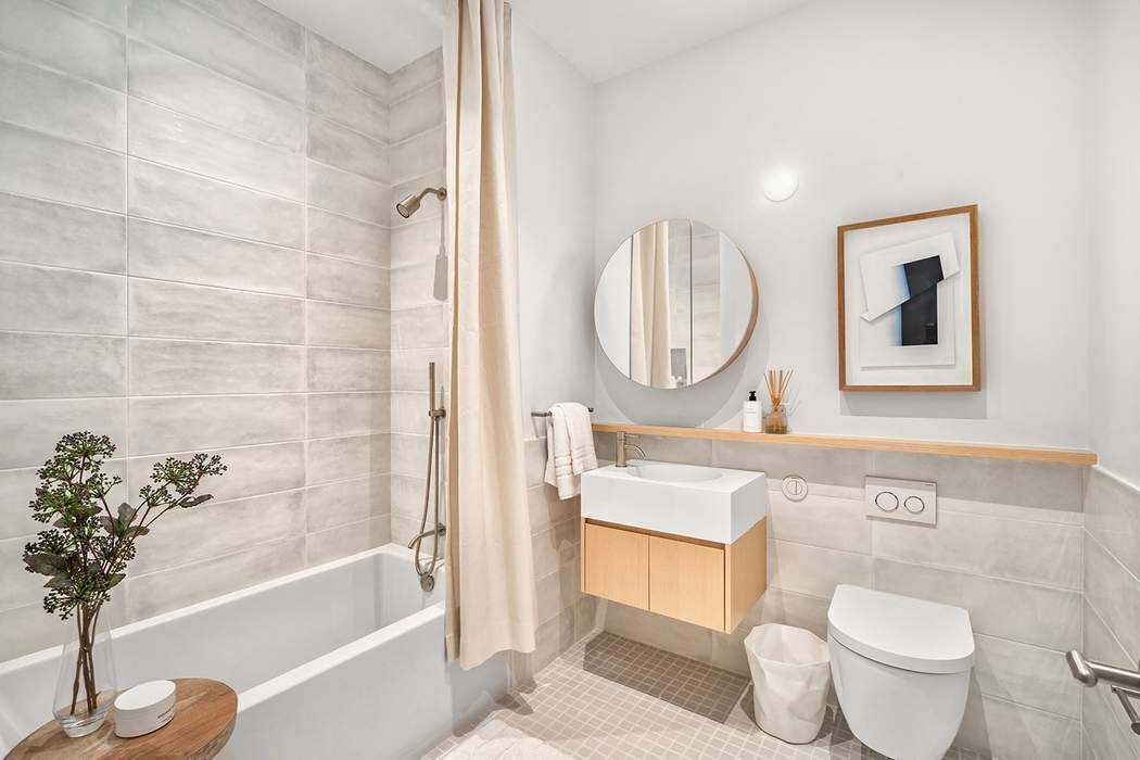 Immediate Occupancy. On-site model residences now available to tour by appointment. Overlooking Front Street, Residence 17C is a two-bedroom, two-and-a-half-bathroom corner residence with 1,471 SF of elegant living space. Upon entry, the foyer introduces an open and light-filled living and entertaining space. The impeccably tailored Workstead-designed kitchen features a statement island with inlaid Fior di Bosco stone slab and chamfered edges, raked maple cabinetry paired with satin nickel hardware and top-of-the-line Gaggenau appliances. The dining area boasts floor-to-ceiling round corner windows and four full-height pantry spaces for additional storage. The primary suite is complemented by an en-suite bathroom with Agglo Ceppo honed stone walls, flooring and countertops, custom brushed nickel shower controls, an undermount tub, and a custom-slatted white maple double vanity with satin nickel pulls, deck-mounted faucets and oak controls, the oasis also includes an impressive walk-in closet. The secondary bedroom includes a spacious closet and an en-suite bathroom featuring mosaic flooring, an undermount tub with brushed nickel fixtures, custom vanity in maple and a round mirrored medicine cabinet. Located close to the foyer, the powder room has a pedestal vanity in African St. Laurent stone with a honed finish and chamfered edges, a hidden mirror, and white maple-clad walls. The laundry room with LG washer & dryer is discretely located off the bedroom hallway and completes this offering. Olympia is a modern interpretation of its surroundings. Rising tall from the heart of historic Dumbo, Olympia offers expansive views of the sun-drenched harbor and Lower Manhattan skyline from the highest crest in the neighborhood. With thoughtful exteriors by Hill West Architects and interiors by Workstead, the 76 homes reflect a sense of scale and rhythm, and a palette of colors and materials that is grounded in the maritime and industrial heritage of Dumbo's waterfront. Olympia is designed to maximize comfort and convenience, boasting over 38,000 SF of indoor and outdoor services and amenities spread over 3 levels. The Garden level features our ground floor amenities. Through a private entry court, a contemporary porte coche`re welcomes you to a sheltered vestibule, and to the building’s triple-height lobby. The fully serviced lobby features a sculpture by Jacob Hashimoto and floor-to-ceiling window walls. Adjoining the lobby is the private garden lounge, perfect for reading a book, while overlooking the MPFP-landscaped Gair Gardens. Located in the building’s lower level, The Club is all about fun and fitness, complete with a game lounge, bar, two-lane bowling alley, state-of-the-art fitness center, spin studio, boxing gym, private locker rooms and maritime-themed kid’s playroom. The Bridge level of Olympia is located on the 10th floor and offers a variety of indoor and outdoor amenities dedicated to recreation and relaxation. Features include a 60’ indoor lap pool, wellness amenities, juice bar, a 58’ outdoor pool and hot tub, cabanas, barbecue areas, children’s ship-inspired playground & waterpark, and a full-size tennis court overlooking the Brooklyn Bridge, lower Manhattan and beyond. Additional services include private on-site parking available for rent or purchase, 24-hour doorman and concierge, package room with refrigerated storage, bicycle storage and private residential storage available for purchase. Sponsor: Fortis Dumbo Acquisition, LLC, 45 Main Street, Suite 800, Brooklyn, NY 11201; Sponsor makes no representation or warranties except as may be set forth in the offering plan filed with the NYS Department of Law. The complete offering terms are in an OP available from sponsor. NYS Department of Law File No. CD20-0174. Equal Housing Opportunity. Co-exclusive.