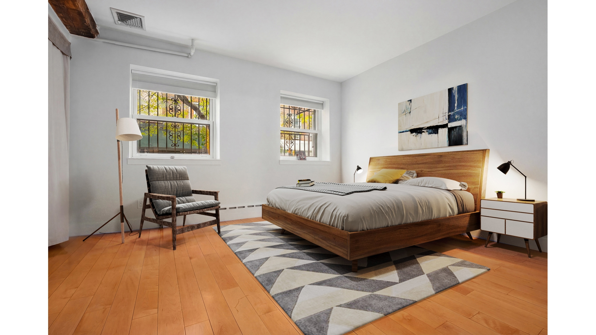 A Rare Three-Bedroom Loft in the Heart of Greenwich Village True three-bedroom lofts in Greenwich Village are exceptionally hard to find-particularly ones that combine generous proportions, beautiful natural light, and authentic architectural character. This 1,440 sq ft corner loft delivers all three. With southern and eastern exposures, the home enjoys wonderful natural light throughout the day. Positioned on the building's mezzanine level well above the street, the loft looks out over open treetop views to the east while benefiting from bright southern sun. Originally constructed in 1915 as a wine vault, the building's heritage is reflected in the loft's distinctive architectural details, including exposed brick walls (painted white in areas), maple floors, a restored original tin ceiling, and substantial wooden beams that give the space warmth and authenticity. The large, beautifully designed kitchen features custom cabinetry, Italian marble countertops, and a Bertazzoni range, creating an ideal space for both everyday living and entertaining. Additional features include: