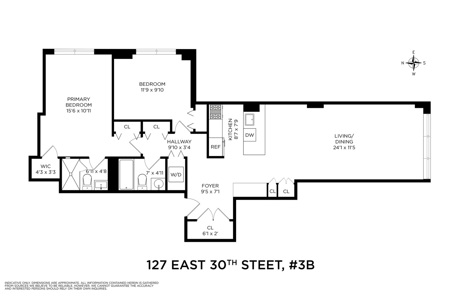 Welcome home to this beautifully gut-renovated two-bedroom, two-bathroom residence, ideally located on a quiet, tree-lined street in the heart of vibrant NoMad. Thoughtfully designed for modern living, this sun-filled home seamlessly blends sophisticated finishes with everyday functionality.The expansive layout features custom built-in cabinetry and closets that maximize storage, while white oak hardwood floors run throughout the apartment. Oversized windows bathe the home in natural light, creating an airy and inviting atmosphere. The gourmet chef's kitchen is outfitted with custom cabinetry, quartzite countertops, a Sub-Zero refrigerator, a Miele range, and Fisher & Paykel dishwashers, making it equally suited for daily living and entertaining.Both bedrooms are generously proportioned and offer ample storage. The primary suite includes a walk-in closet and a luxurious en-suite bathroom. Sleek, modern finishes are found throughout the home, complemented by smart-home features such as smart A/C and motorized window treatments. Additional conveniences include an in-unit Miele washer and dryer and a private deeded storage unit.The building offers full-service amenities, including 24/7 concierge service, secure package storage, a bike storage room, and a panoramic rooftop with breathtaking views of the Empire State and Chrysler Buildings.Situated in the sought-after NoMad neighborhood, this residence provides unbeatable access to world-class dining, shopping, nightlife, and cultural destinations. Madison Square Park, Whole Foods, Trader Joe's, and multiple transit lines are just moments away.Offering a rare combination of space, luxury, and convenience, this turn-key home is perfect for those seeking refined New York City living. Whether enjoying the tranquility of the tree-lined street, cooking in the chef's kitchen, or entertaining on the building's communal rooftop with iconic skyline views, this residence truly delivers. Don't miss the opportunity to own a stunning home in one of Manhattan's most desirable neighborhoods