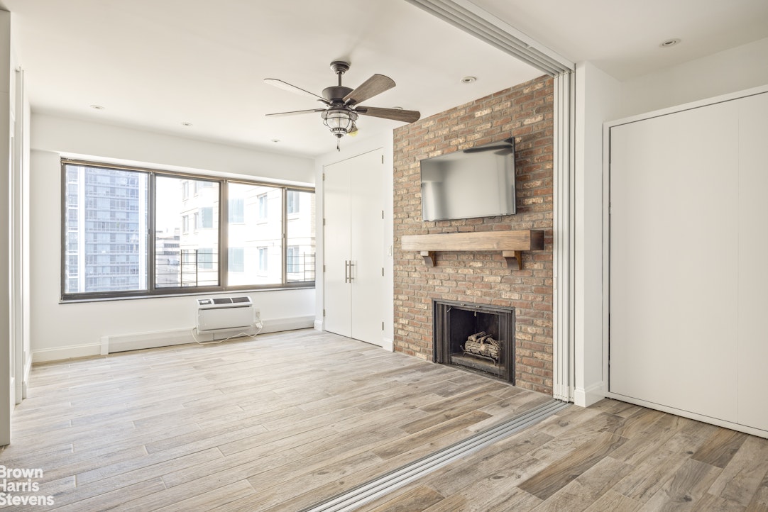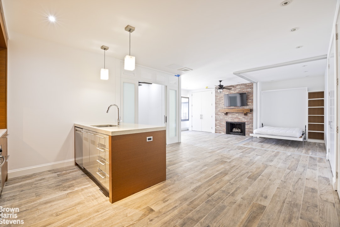 This immaculate home in the heart of Hell's Kitchen offers a flexible layout with plenty of room for your live, work, and entertaining needs. The open concept living space includes a modern kitchen with breakfast bar, high-end appliances, and pantry. Highlights include a wood-burning fireplace, western sunlight, space for a dining table, large custom closets, separate den/office, and a bonus flex space with a murphy bed that can be closed off for overnight guests. The large bedroom, set away from the main living space, comfortably accommodates a king-size bed and has a new en-suite half bathroom. The adjacent full bathroom has been newly renovated with navy and white finishes, and includes a new shower stall and linen closet.