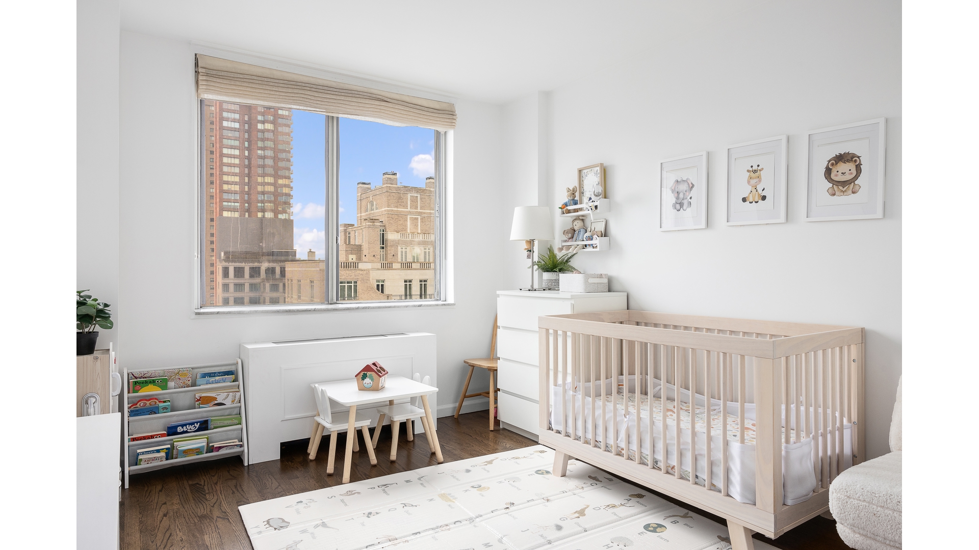 As soon as you enter the apartment, you will be wowed by the amount of natural light that floods the apartment from the large open windows. Enjoy river views from your north-facing balcony perfect for enjoying a drink or watching the boats go by. Direct East river views can be seen from the windowed kitchen which boasts sleek white cabinetry, ceramic backsplash tiles, quartz countertops, and top of the line stainless steel Samsung appliances, including a Fisher & Paykel refrigerator.