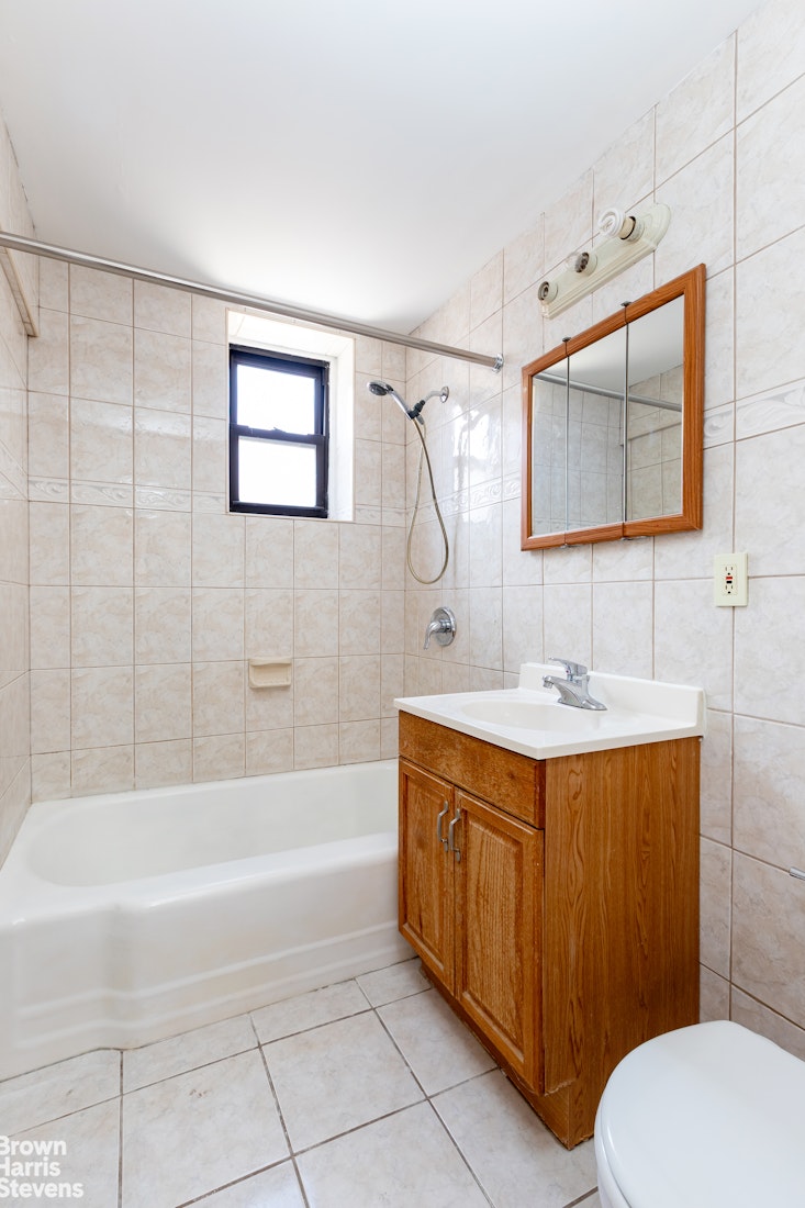 The generously sized bedroom comfortably fits oversized furniture and features windows on two exposures, bringing in great natural light. The bathroom also includes a window.