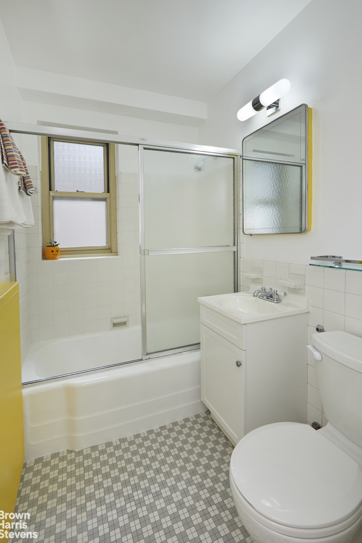 The king-sized bedroom sits on the corner of the building so benefits from windows with two exposures. With two extra-large closets the bedroom itself can either be a minimalist's dream, or perhaps it's the wall space needed to satisfy a prolific art collector. Next to the bedroom is the bathroom which could not be brighter in the morning because, unusually for city living, it has its own natural light from an east-facing window.