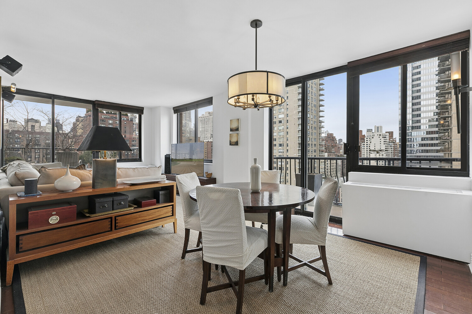 This lovely corner unit at 343 East 74th Street boasts a generous living area with double exposure that leads out to a private wrap terrace facing south and west. There is an additional south facing balcony and a gracious dining area. The galley kitchen can be opened or contained and features custom cabinets and counters. The master bedroom is generous and has a modern bathroom ensuite.
