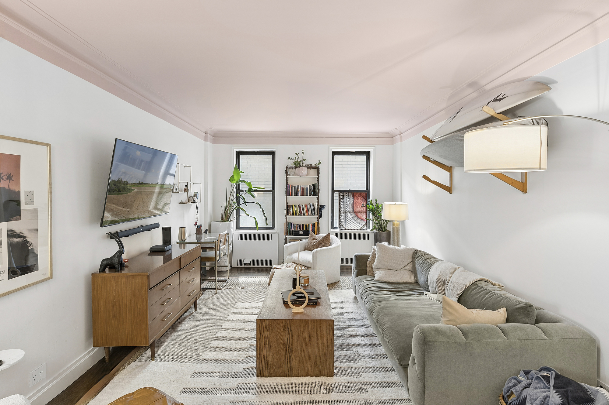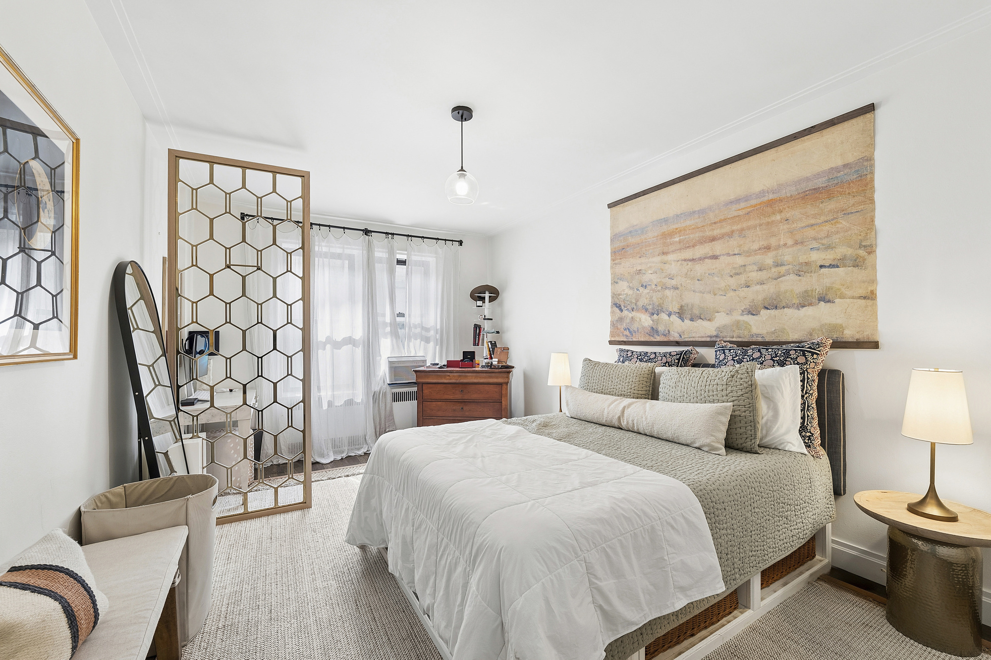 • WELCOME TO YOUR one-bedroom in the heart of Chelsea Welcome to Apartment 1K at 225 West 25th Street, a rare, oversized one-bedroom in the heart of Chelsea, thoughtfully designed for modern city living. This spacious home offers a flexible layout that easily accommodates your needs. Upon entry you see the beautiful original hardwood floors, high ceilings and arched doorways. Walking into the home, the foyer space with large closet and arched wall cut-out with decorative shelving give you the inviting feeling one needs in their home. To the right upon entry is a renovated kitchen that is impeccably designed with white cabinets, grey stone countertops, and teal glass tiled backsplash as well as a window for ample natural light. Fully equipped with top appliances such as Bertazzoni and Blomberg; an efficient workspace for everyday cooking Heading from the kitchen you enter into a separate dining space, a standout feature that’s perfect for entertaining or enjoying meals at home; something rarely found in typical one-bedroom apartments. Just off the separate dining area is the sunken living room separated by beautiful wrought-iron railings and arched wall that features two big windows facing the building’s courtyard offering natural light and privacy. Giving a true classical feel. Heading back towards the dining room to the left is your spa-like bathroom with glass and chrome finishes, a rain shower system perfect for a relaxing shower after a long NYC day. Further down the hallway from the bathroom is a spacious bedroom large enough to fit a king-sized bed, furniture and a home office nook. Windows in the bedroom also face the courtyard making this bedroom private and quiet. Also, there's so much storage throughout the home, and as an added bonus, this home comes with a storage cage in the building's lower level! Residents enjoy the convenience of a live-in superintendent, ensuring seamless day-to-day living. A highlight of the building is the beautifully maintained rooftop outdoor space perfect for relaxing, socializing, or taking in city views.Additionally, the building has laundry in the lower level, bike storage, and storage cages Situated in vibrant Chelsea, this home places you moments from top restaurants, shopping, galleries, and major transportation making it an exceptional opportunity for professionals, pieds-à-terre, or anyone seeking a comfortable and stylish Manhattan home.