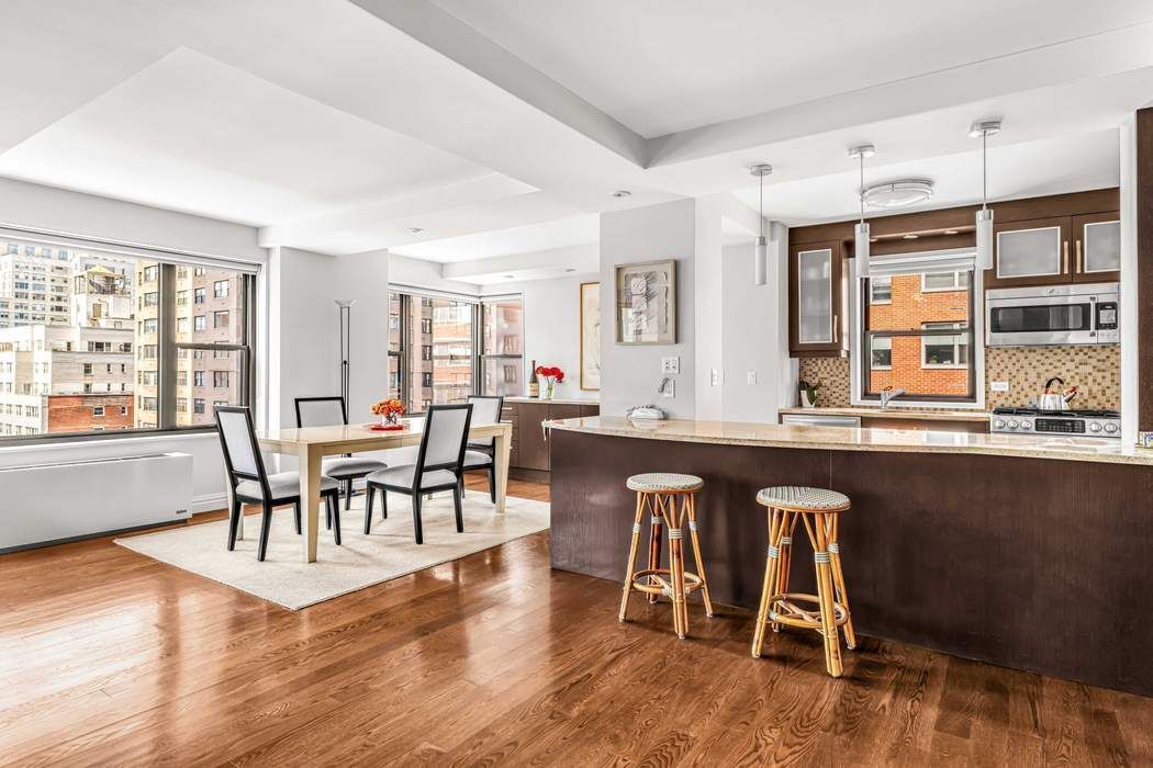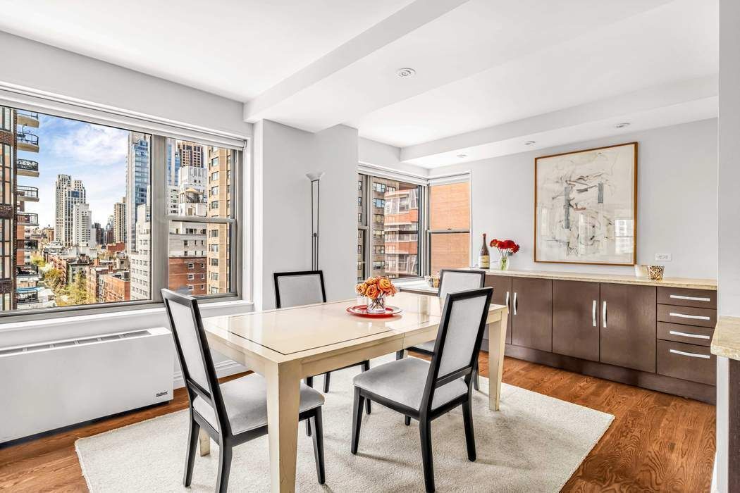 Residence 12HJ is an expansive corner home situated on a coveted high floor. Bathed in an abundance of natural light, offering impressive city views and a glimpse of the river, this 3 bedroom/3 bathroom apartment blends modern design with custom craftsmanship, representing East End Avenue living at its most refined. An inviting entryway leads into a vast, open-concept living and dining space, framed by western, northern and southern exposures and accented by rich oak flooring. Whether hosting guests or enjoying a quiet evening, this airy layout achieves the ideal balance of comfort and style. A cozy reading nook provides a quiet place to unwind. The windowed kitchen is thoughtfully designed for both beauty and functionality, featuring custom rift red oak cabinetry, a sleek glass backsplash, granite countertops, and premium Bosch and Liebherr appliances. A central island with casual seating and a built-in wine fridge adds comfort and enjoyment while enhancing the kitchen's stylish appeal. The gracious primary suite is defined by a generous bedroom and a spa-inspired en-suite bath adorned with recycled porcelain and glass tiles, a Duravit sink, and a Toto toilet. Two additional bedrooms and two beautifully-appointed bathrooms complete this home's sophisticated feel. Exceptional storage is found throughout with outfitted closets, while a spacious laundry room featuring custom cabinetry and granite countertops adds ease and convenience. Climate control is at your fingertips with individual PTAC heating and cooling units in every room. Designed by Emery Roth, 55 East End Avenue is a full-service, pet-friendly post-war co-op boasting an array of amenities: 24-hour doorman, live-in resident manager, a stunning roof deck with panoramic views, fitness center, central laundry room, lending library, and bike/storage rooms (available via waitlist). Nestled along the tranquil East River Promenade, the building is just a few blocks from the seasonal beauty of Carl Schurz Park. This peaceful Yorkville enclave is a refreshing retreat from the city's pace, while remaining close to top-tier dining, shopping, schools, and medical care. Convenient transportation options include the Second Avenue Q train, CitiBike stations, NYC Ferry and crosstown buses. Please note: All showings are by appointment only and with 24-hour notice.
