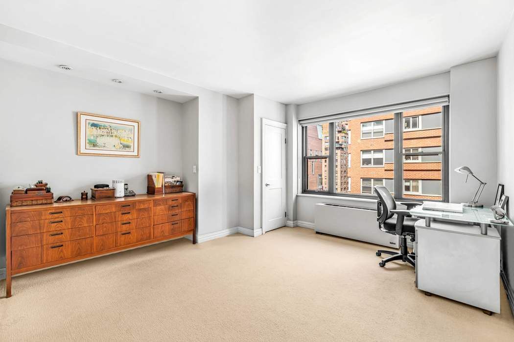 • Residence 12HJ is an expansive corner home situated on a coveted high floor. Bathed in an abundance of natural light, offering impressive city views and a glimpse of the river, this 3 bedroom/3 bathroom apartment blends modern design with custom craftsmanship, representing East End Avenue living at its most refined. An inviting entryway leads into a vast, open-concept living and dining space, framed by western, northern and southern exposures and accented by rich oak flooring. Whether hosting guests or enjoying a quiet evening, this airy layout achieves the ideal balance of comfort and style. A cozy reading nook provides a quiet place to unwind. The windowed kitchen is thoughtfully designed for both beauty and functionality, featuring custom rift red oak cabinetry, a sleek glass backsplash, granite countertops, and premium Bosch and Liebherr appliances. A central island with casual seating and a built-in wine fridge adds comfort and enjoyment while enhancing the kitchen's stylish appeal. The gracious primary suite is defined by a generous bedroom and a spa-inspired en-suite bath adorned with recycled porcelain and glass tiles, a Duravit sink, and a Toto toilet. Two additional bedrooms and two beautifully-appointed bathrooms complete this home's sophisticated feel. Exceptional storage is found throughout with outfitted closets, while a spacious laundry room featuring custom cabinetry and granite countertops adds ease and convenience. Climate control is at your fingertips with individual PTAC heating and cooling units in every room. Designed by Emery Roth, 55 East End Avenue is a full-service, pet-friendly post-war co-op boasting an array of amenities: 24-hour doorman, live-in resident manager, a stunning roof deck with panoramic views, fitness center, central laundry room, lending library, and bike/storage rooms (available via waitlist). Nestled along the tranquil East River Promenade, the building is just a few blocks from the seasonal beauty of Carl Schurz Park. This peaceful Yorkville enclave is a refreshing retreat from the city's pace, while remaining close to top-tier dining, shopping, schools, and medical care. Convenient transportation options include the Second Avenue Q train, CitiBike stations, NYC Ferry and crosstown buses. Please note: All showings are by appointment only and with 24-hour notice.