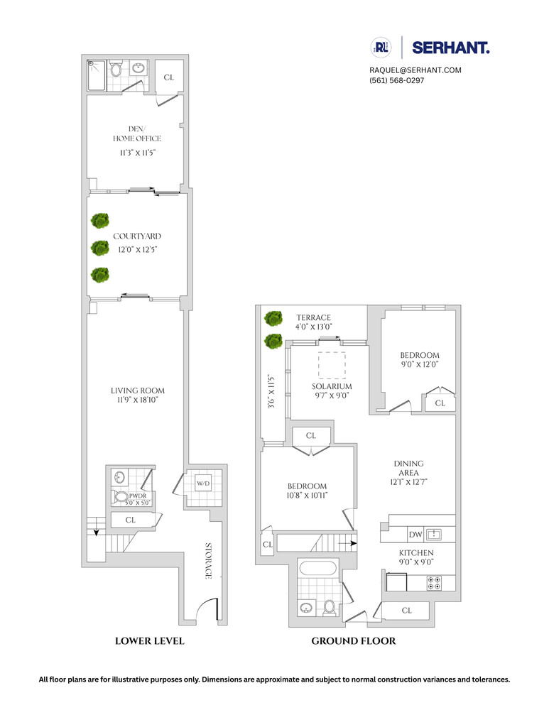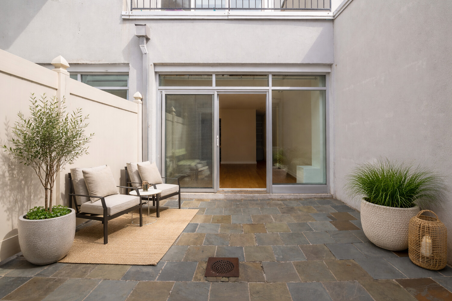 This 3 bedroom, 2.5 bath residence, is a truly unique and rarely available home. The upper level features an open kitchen and living and dining area, two bedrooms, a full bathroom, and a sun-filled solarium that opens directly onto a private terrace. The lower level offers a spacious great room, abundant storage, and a powder room, with direct access to a private 140 square foot courtyard. Across the courtyard, a separate studio with a full bathroom provides the perfect space for a third bedroom, home office, gym, or guest suite.