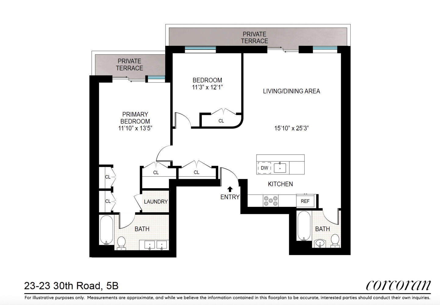 Welcome to Residence 5B at 23-23 30th Road, a spacious and thoughtfully designed two-bedroom, two-bath home spanning 1,133 square feet and 157 square foot terrace within a boutique, newly constructed 16-unit condominium in the heart of Astoria.