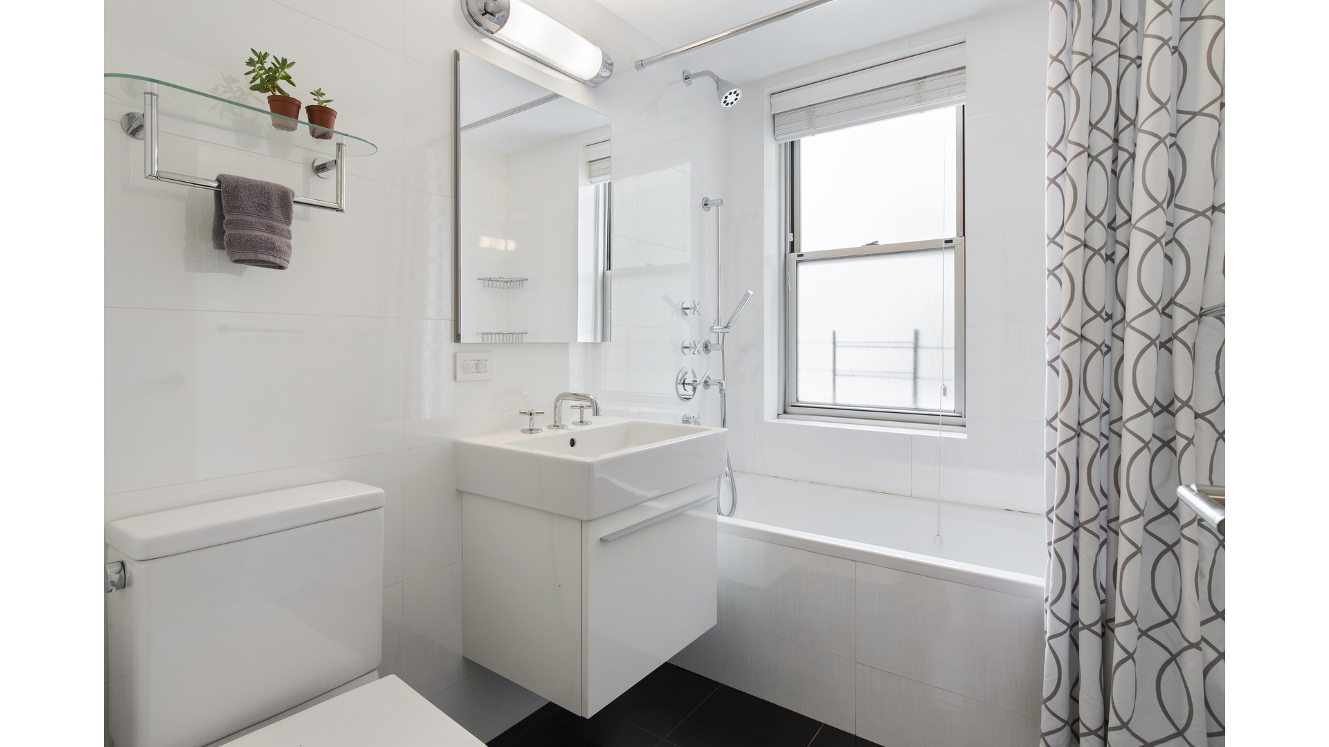 A Miele Washer and Dryer, 5" Wide-Plank Oak Floors, and a stunning Powder Room featuring Waterworks fixtures & Thassos Marble, complete this beautiful Gramercy Park home.