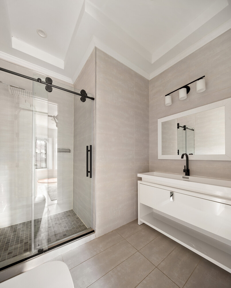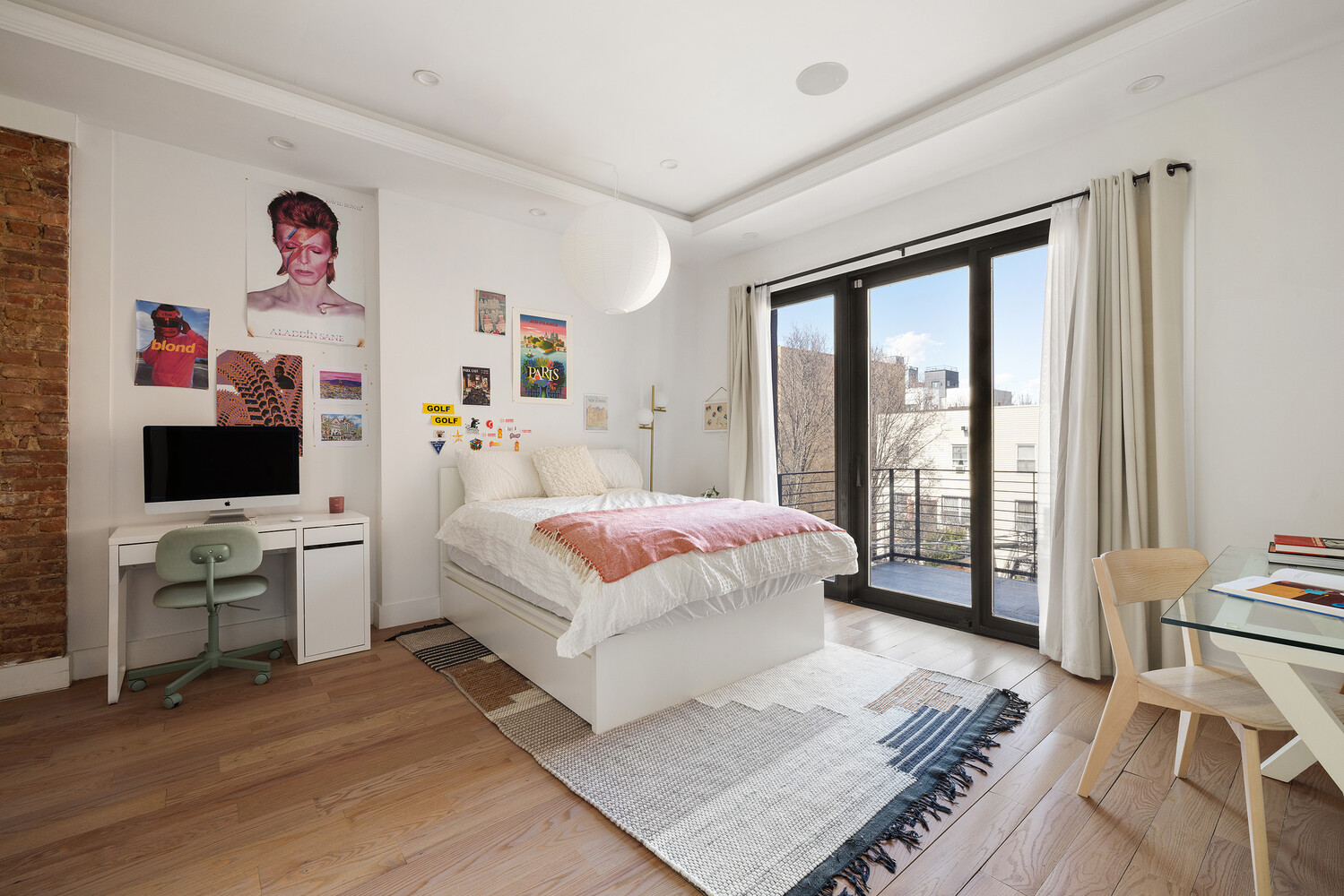 The master bedroom is a full floor with the bedroom in the back for privacy, with a large walk in closet and skylight, and master bath with soaking tub, double vanity, double shower. The other two bedrooms have exposed brick and there is laundry on the floor.What's rare here and actually matters are the private outdoor spaces off multiple bedrooms. Decks off the second and third floors extend the living experience in a way most townhouses can't offer, giving you real, usable outdoor space directly from where you wake up. The top level is dedicated to the primary, creating a full-floor retreat, with a roof deck adding yet another layer of outdoor space with panoramic views of downtown and midtown Manhattan.The garden-level residence is fully self-contained and thoughtfully finished. Configured as a one-bedroom with an open kitchen and living space, it also includes a finished lower level with a half bath and in-unit washer/dryer.