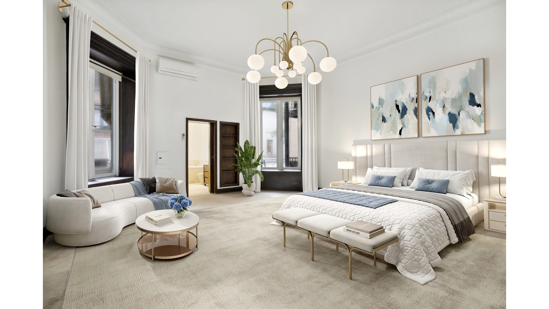 This amazing loft-inspired residence with 2 large bedrooms and 2 full baths rests on the parlor floor of a handsome double wide 1895 brownstone located just one block from Central Park! Exceptional features like stunning exposed brick walls, rich hardwood floors, elegant moldings, beautiful wood trim, stained glass accents, 12' ceilings with decorative fireplaces, grace the massive 2,500 square foot apartment, complete with a private terrace.