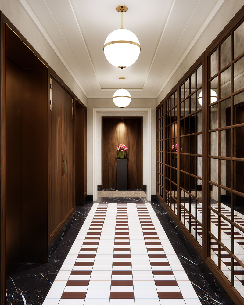 Magnificent bathrooms will take your breath away. The combination of Waterworks unlacquered brass fixtures juxtaposed with Italian marbles creates a hotel-like level of classic styling. Primary bathrooms include double sinks integrated into oversized floating walnut vanities with Nero Marquina tops, Caliza Capri limestone, frameless glass showers, and in select bathrooms you will even enjoy deep soaking tubs with windowed skyline views. Secondary baths feature Italian Cotto Brick tiles, Nero Marquina tops and sizeable vanities for storage.