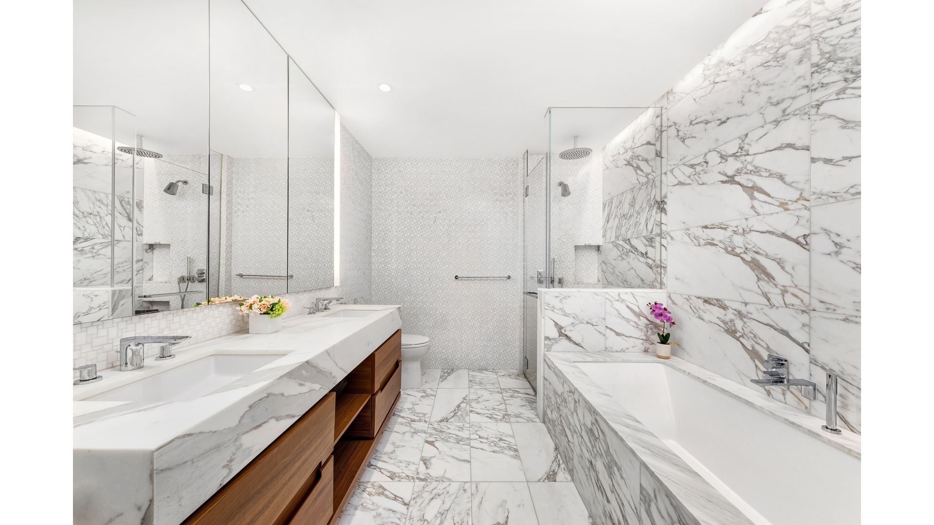 Interiors by the acclaimed design firm Yabu Pushelberg reflect a timeless approach, pairing refined materials with thoughtful craftsmanship. The custom Italian kitchens by Scavolini feature Gaggenau appliances, polished chrome Dornbracht fixtures, fully vented range hoods, wine refrigeration, and garbage disposals. Bathrooms are elegantly finished with stone and custom wood cabinetry, creating spa- like retreats throughout the home. Phillip Jeffries wallpaper is featured throughout.