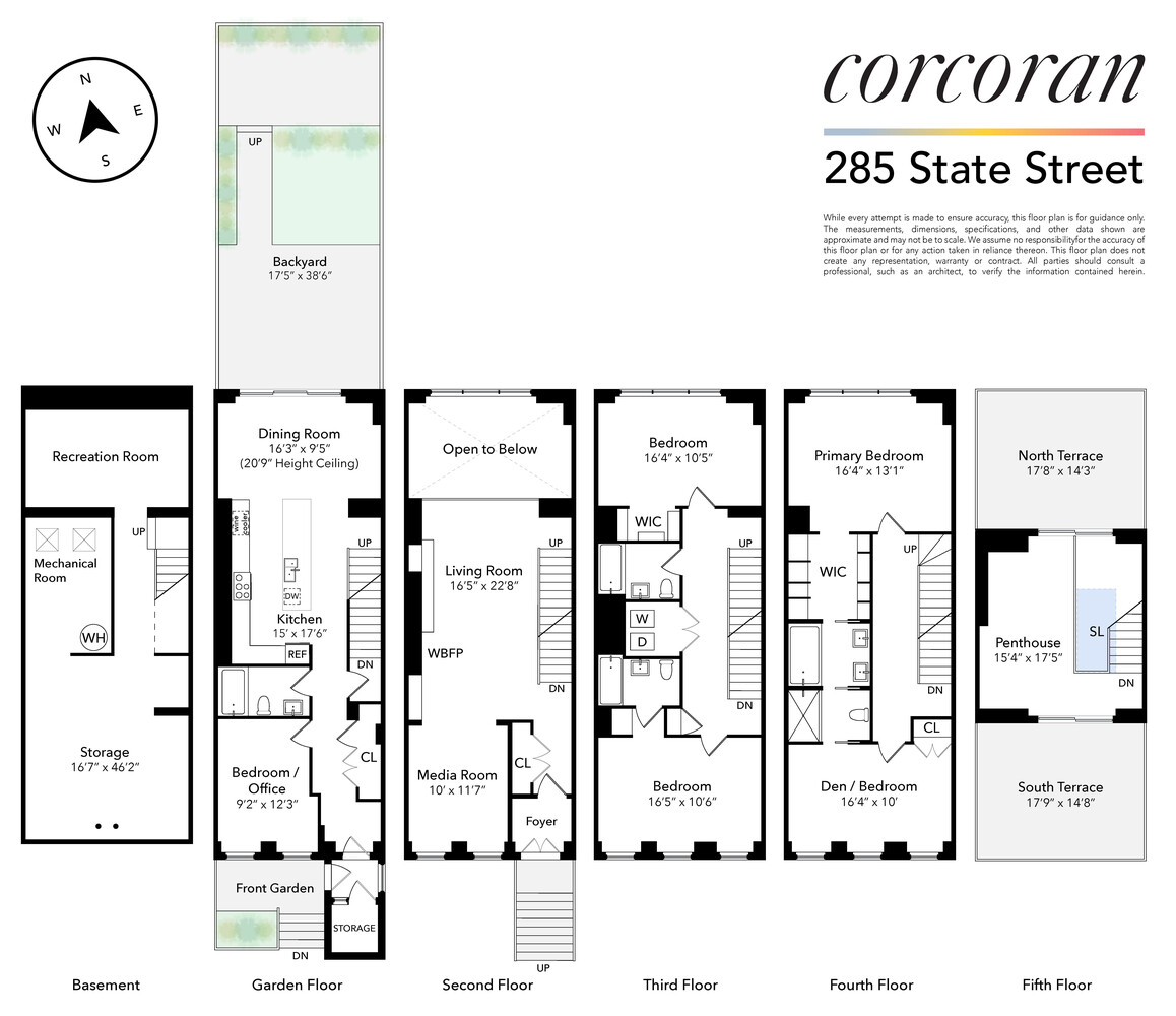 • Introducing 285 State Street - a modern and expansive Boerum Hill townhouse offering five bedrooms, four bathrooms, a penthouse room flanked by north and south terraces, a lovely garden and patio, and a massive basement with a rec room and tons of storage. Built in 2007 as one of the award-winning 14 Townhouses with over 4,000 square feet, this home features dramatic, double-height entertaining space in an open plan layout. Daylight floods the interior through 9-foot south-facing windows, a 20 foot north facing glass wall, and a huge skylight above the wood and steel stair.