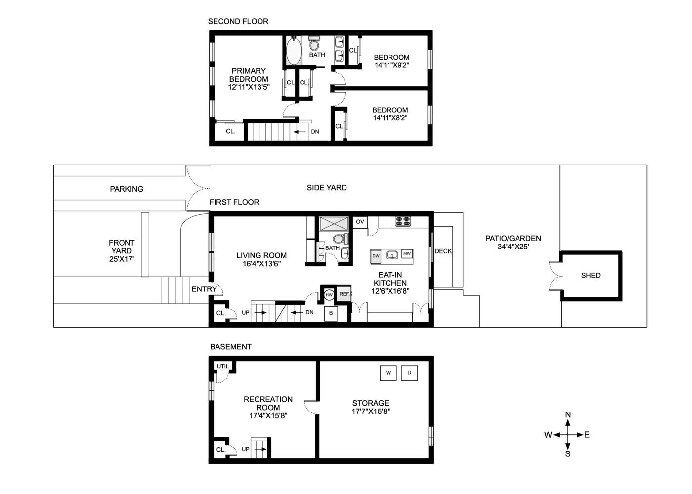 Upstairs, the second floor offers three generously sized bedrooms, each with ample closet space and oversized windows. A second fully renovated bathroom with a bathtub, double sinks, and a large hall closet completes this level. The fully finished basement is divided into a spacious recreational room and a utility area for storage, equipped with a washer and dryer. This home also offers central air and updated mechanicals.