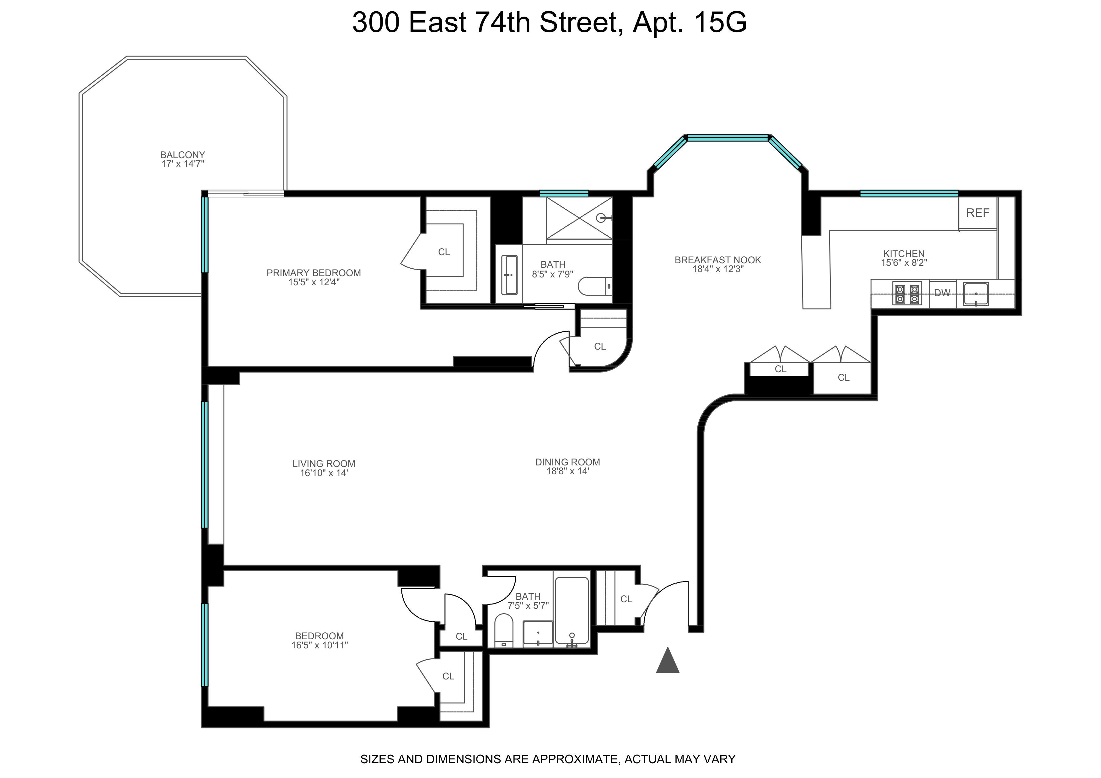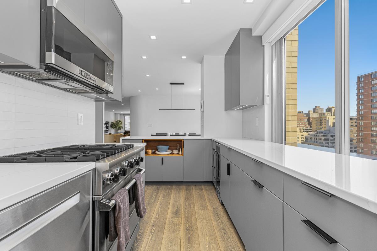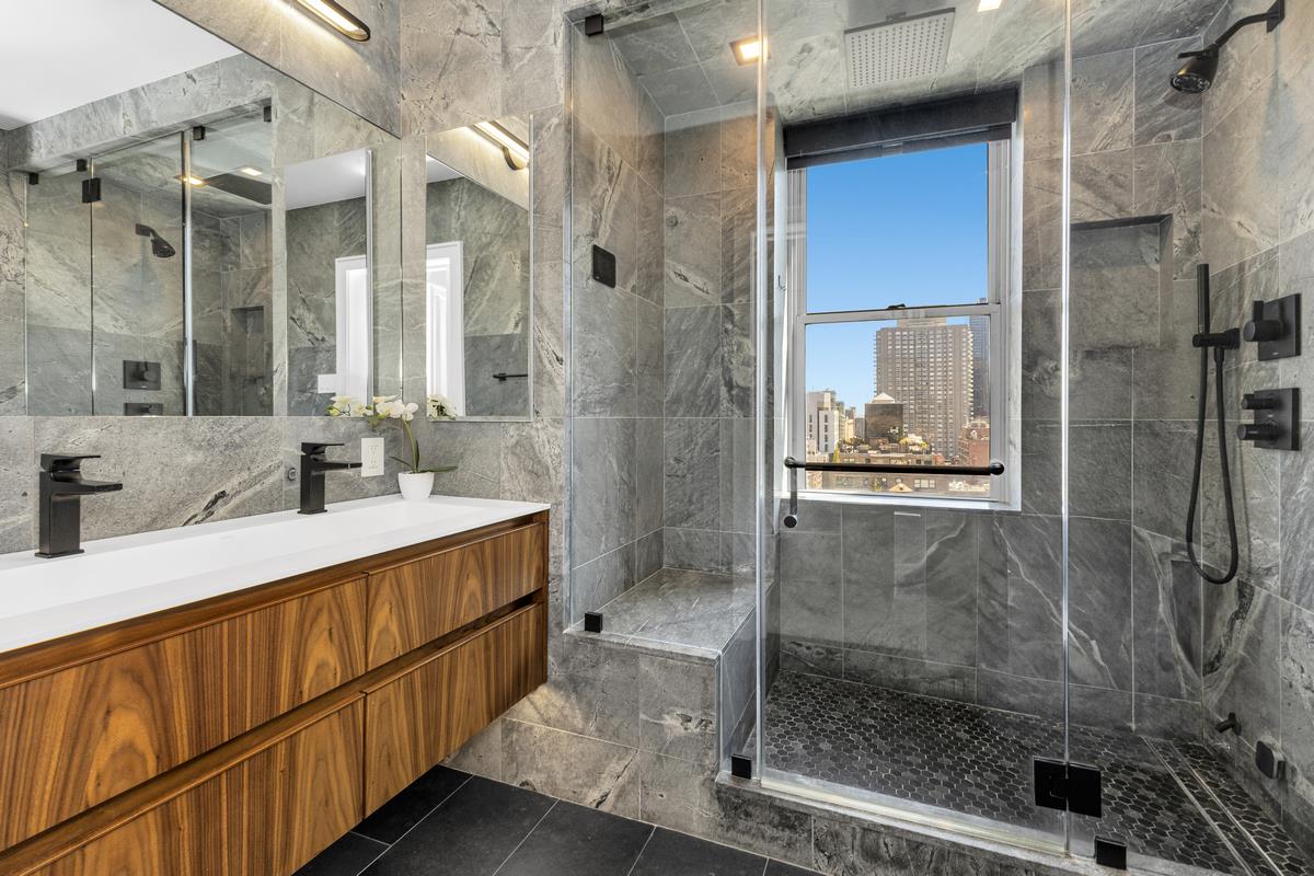 Residence 15G at 300 East 74th Street is a fully renovated, move-in ready two-bedroom, two-bathroom smart home finished with high-end materials and thoughtful design throughout. Connected to Amazon Alexa, the home features European oak wood floors, Nest thermostats, a Sonos sound system, motorized shades, and Lutron Caseta lighting throughout. Positioned on a high floor, the apartment is filled with natural light and features open city views from oversized windows in every room.