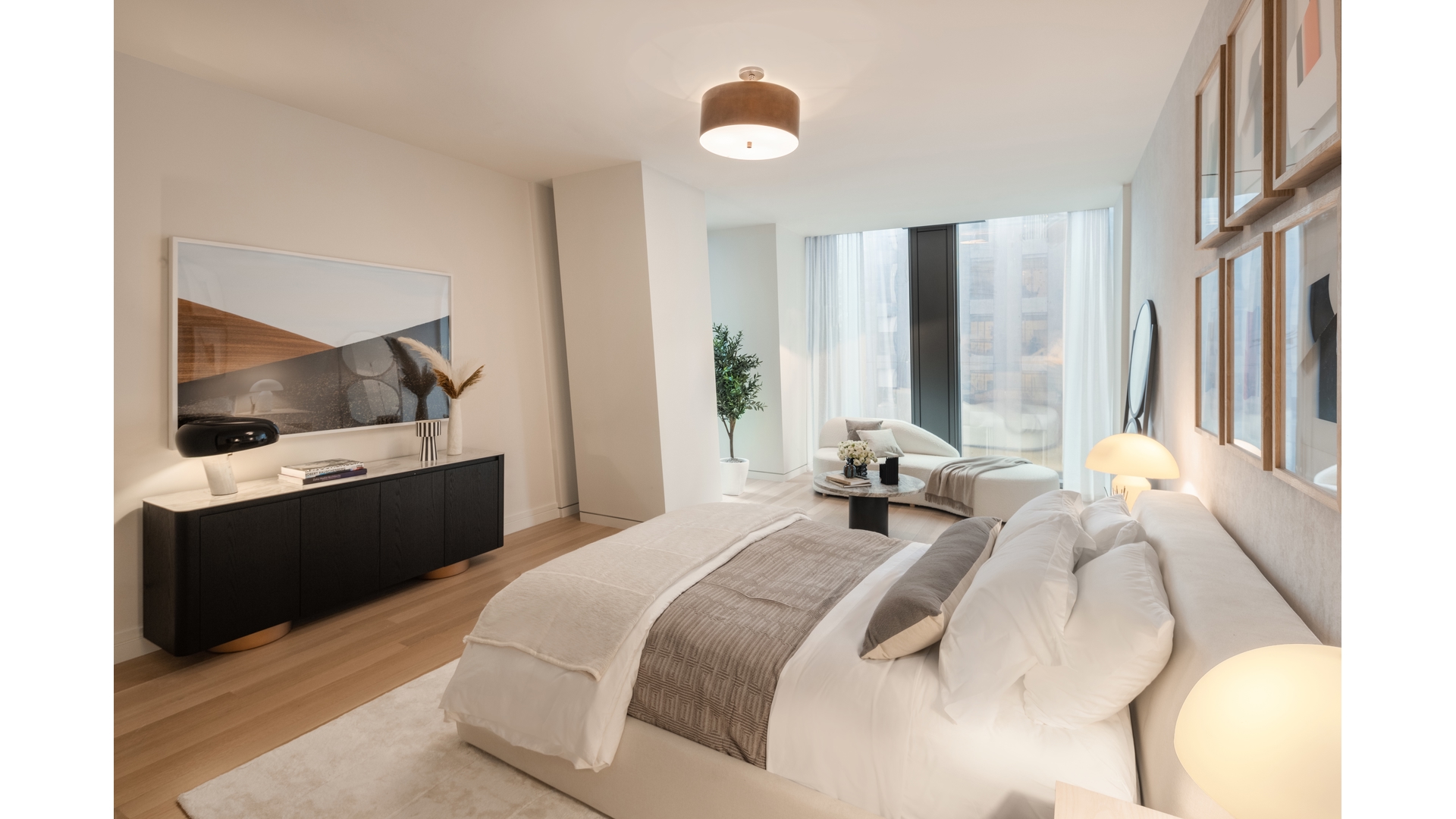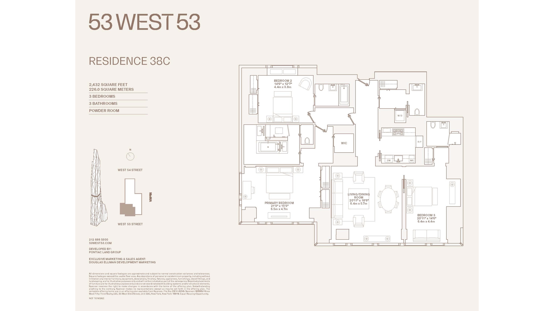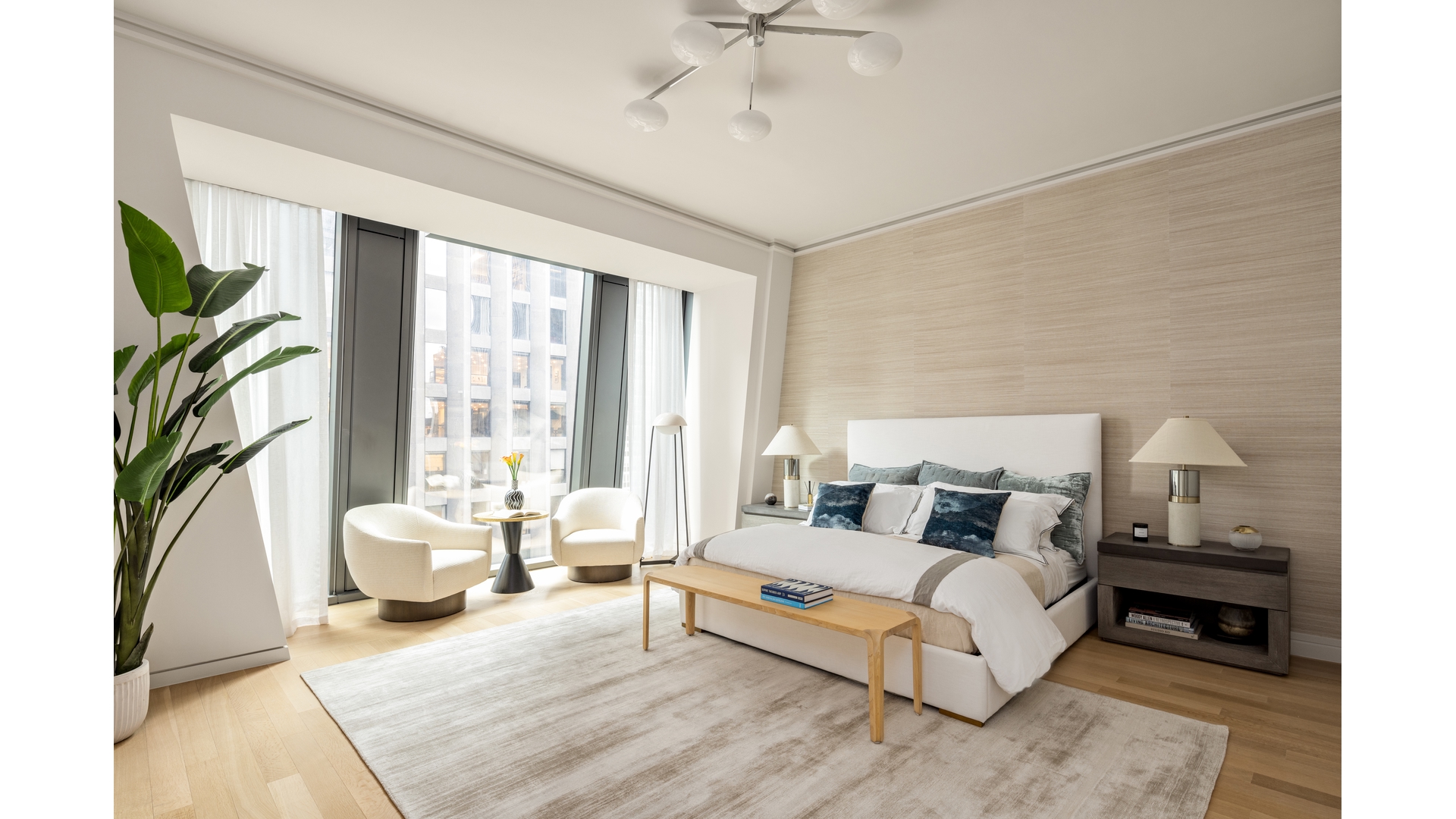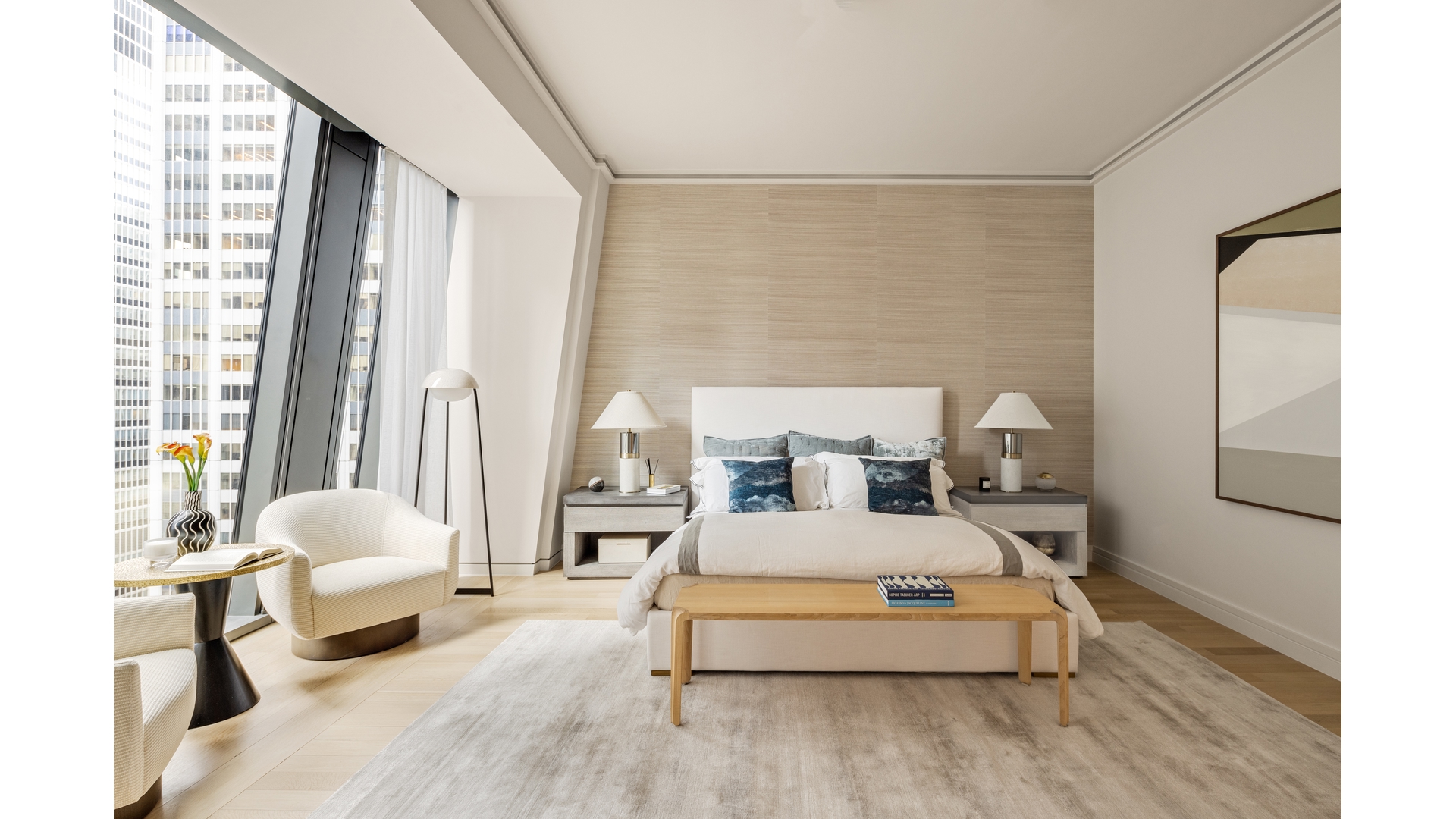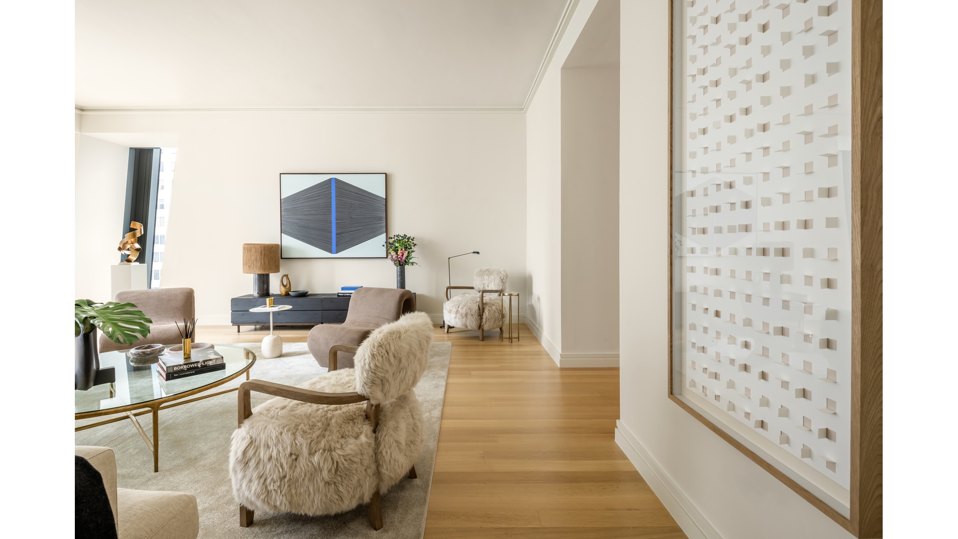 Combining superb sophistication and craftsmanship with the intimate feeling of home, Residence 38C at 53 West 53 comprises 2,432 square feet, offering three bedrooms, three-and-a-half bathrooms, and north-, south-, and west-facing exposures. Gracious proportions and ceilings ranging up to approximately 10'9" set the awe-inspiring stage for world-renowned designer, Thierry Despont, to craft singular spaces in the sky with many custom elements typically reserved for primarily commissioned homes. The rich yet soft palette of museum-quality finishes imbues each space with boldness and elegance.