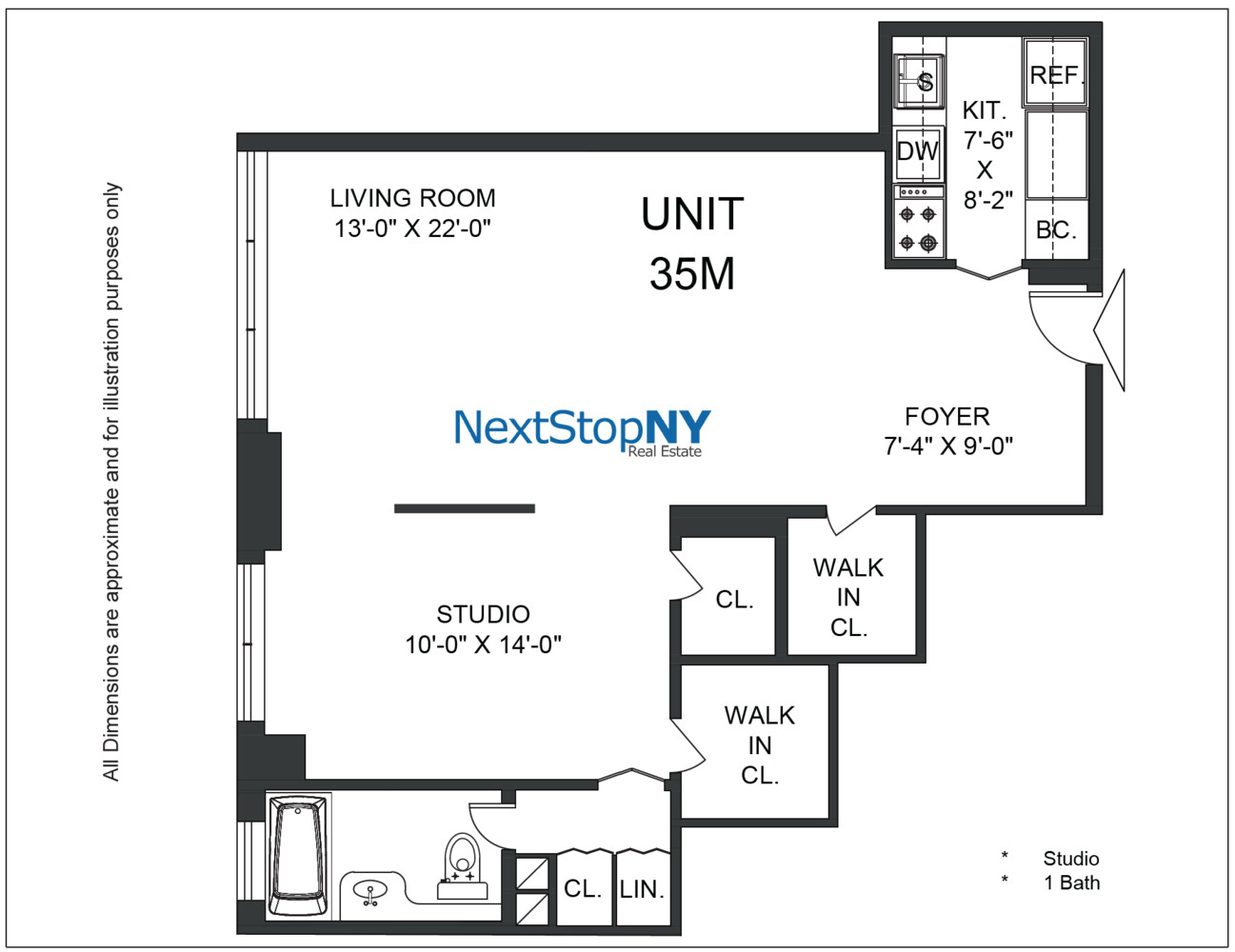 Bring your contractor, designer or a creative mind. This is an alcove studio that can easily be converted into a 1 bed 1 bath. The apartment needs work and is being sold in As-Is condition.