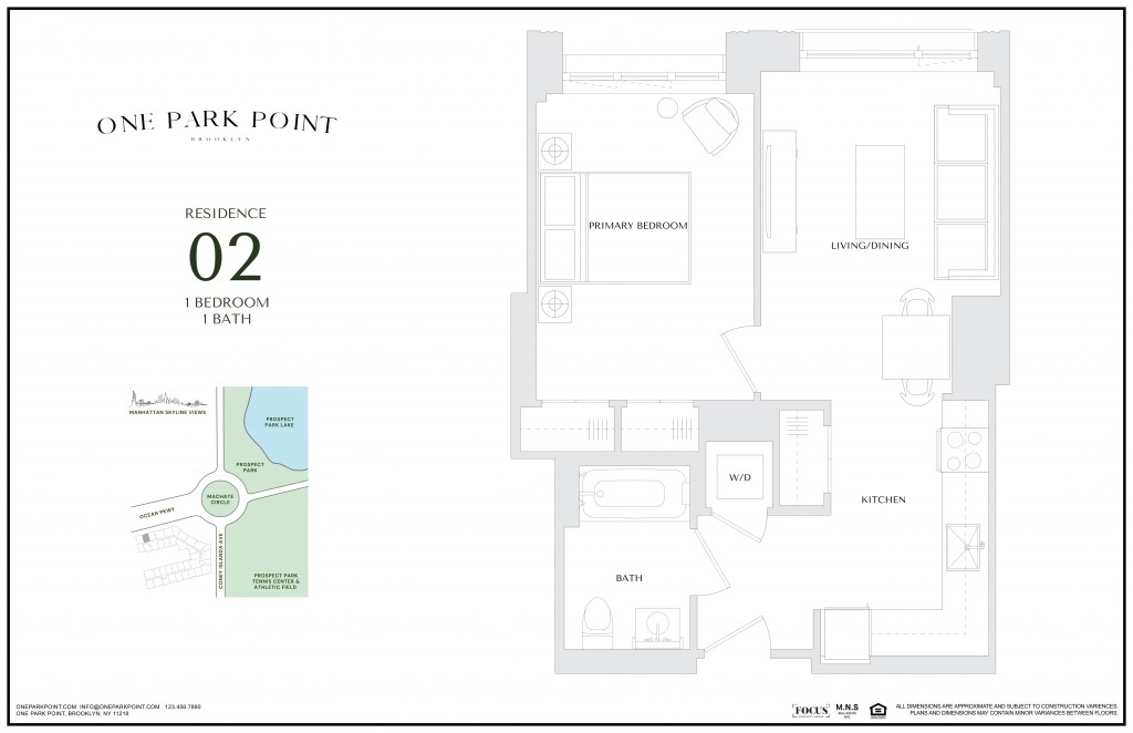 Introducing One Park Point, a brand new development located steps from Prospect Park offering an array of one and two bedroom residences.Located in the heart of Brooklyn, One Park Point stands as a testament to what modern urban living should be. It’s a place where the energy of the city meets the calm of nature, where luxury meets convenience, and where your home is more than just an address – it’s the key to a lifestyle of endless possibilities. Discover a new dimension of luxury at One Park Point, where every amenity is designed with your comfort, convenience, and pleasure in mind. From serene outdoor spaces to state-of-the-art wellness facilities, our array of premium amenities caters to every facet of modern urban living.We believe luxury is more than just an aesthetic—it’s a lifestyle. That’s why our building is designed to enhance your daily experience, offering a sanctuary amidst the hustle and bustle of Brooklyn.Welcome home to One Park Point.Our units feature• Expansive Views of Prospect Park and City Skyline• Custom Kitchen Cabinets• White Oak Flooring• Oversized Windows• In-unit Washer/Dryer• Walk- in Closets• Private Outdoor TerracesOur building features*• Furnished Roof Deck with 360 views of the City Skyline and Prospect Park• Co-Working Spaces• Landscaped Inner Courtyard• Fully Equipped Fitness Center• Yoga/Barre Room• Resident Lounge• Serene Library Lounge• Children’s Playroom• Bike Storage• Laundry Room• On-Site Parking*Certain unit features are not applicable to all units. Images & Tours shown are of a model home and may not be reflective of the actual unit layout listed.*Net Rent Advertised.*Price shown is Base Rent. Residents are required to pay: At Application: Application Fee ($20.00/leaseholder, nonrefundable); At Move-in: Security Deposit (Refundable) (100%/unit); Utility-New Account Fee ($15.00/unit); At Move-out: Utility-Final Bill Fee ($15.00/unit); Monthly: Community Amenity Fee ($75.00/leaseholder); Electric-3rd Party (usage-based); Utility-Billing Admin Fee ($5.50/unit). Please visit the property website for a full list of all optional and situational fees. Floor plans are artist’s rendering. All dimensions are approximate. Actual product and specifications may vary in dimension or detail. Not all features are available in every rental home. Please see a representative for details.Follow us on Instagram for more pictures and videos: @oneparkpoint_