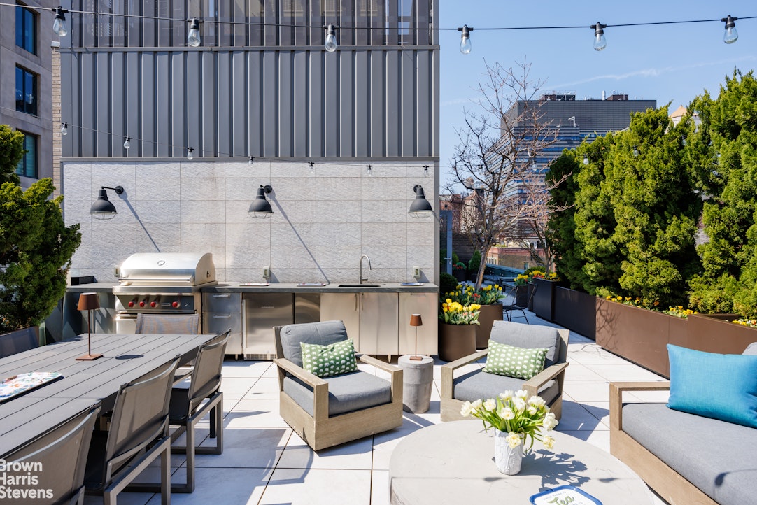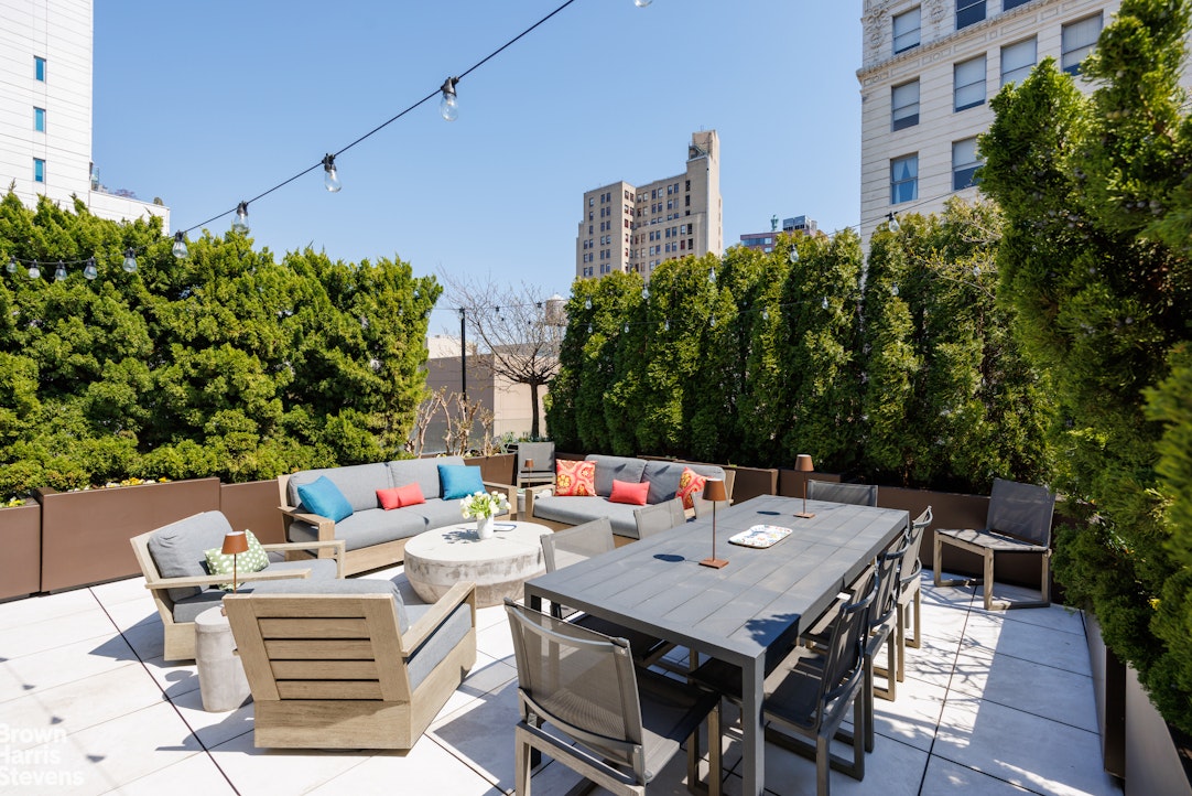 Spanning approximately 3,127 square feet of interior space, the home is complemented by a spectacular 1,361-square-foot private roof terrace-fully landscaped, irrigated, and equipped with an outdoor kitchen-ideal for alfresco dining, entertaining, or simply taking in sweeping views toward Union Square and across downtown Manhattan.