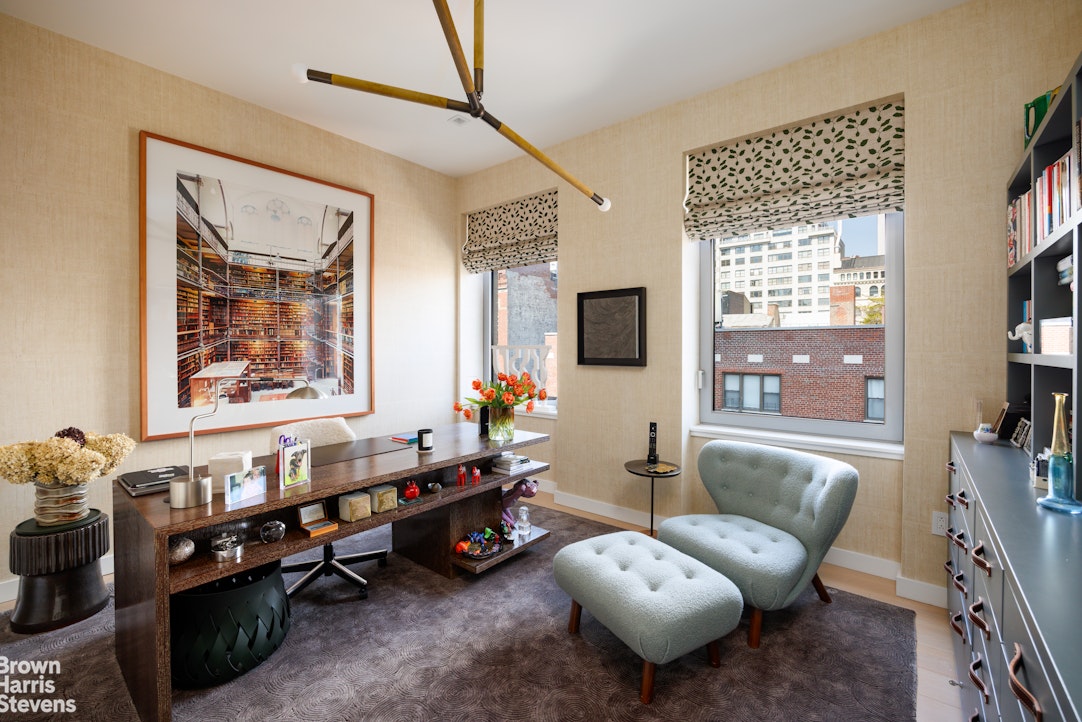 Perched atop one of downtown's most coveted addresses, this exceptional full-floor penthouse offers the ultimate expression of modern Village living. Designed by Morris Adjmi Architects and masterfully curated by acclaimed interior designer Amie Weitzman, this three-bedroom residence with a library (or fourth bedroom) seamlessly blends refined contemporary design with warm, livable elegance.