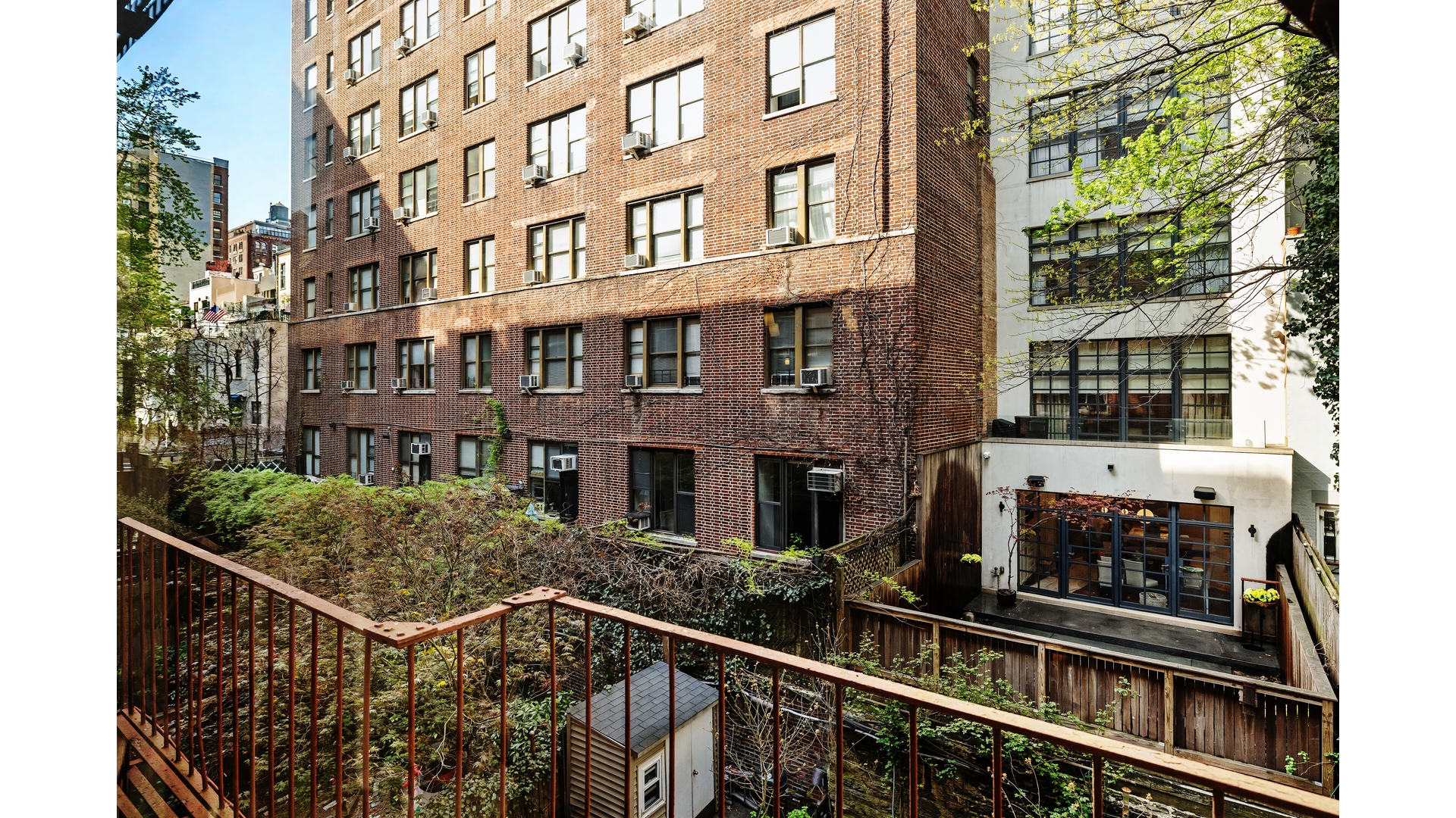 Overlooking charming brownstones and lush greenery, the apartment enjoys lovely natural light and open sky views.