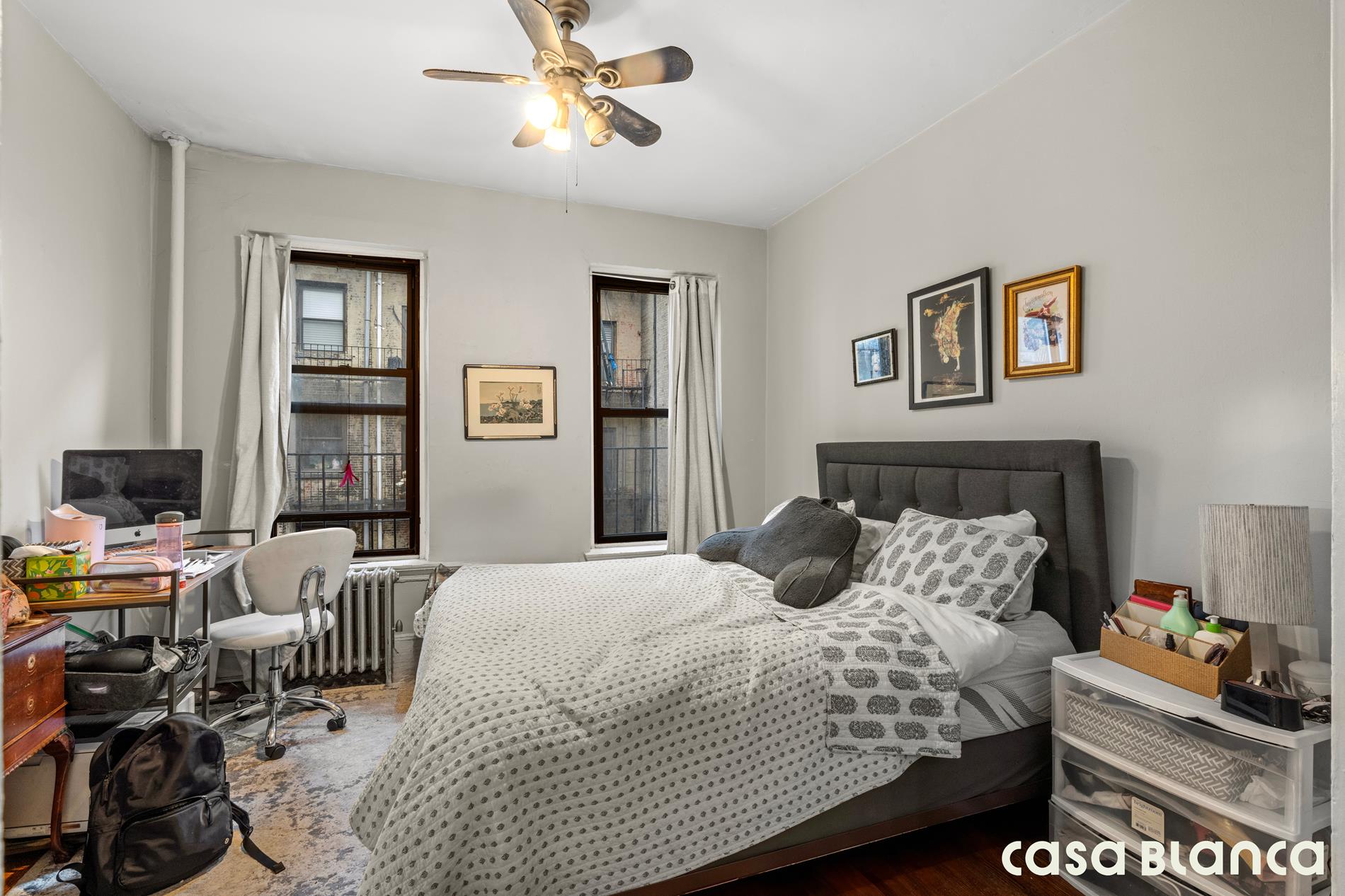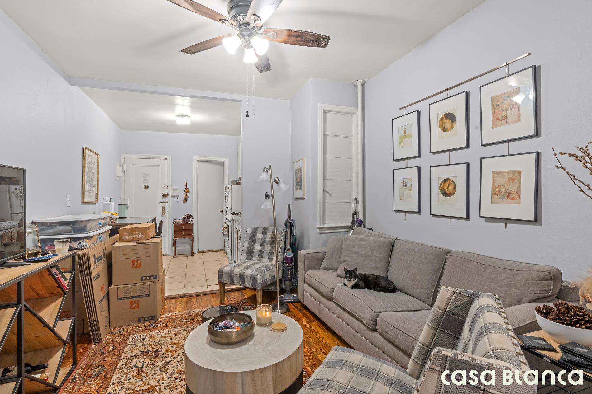 Located just one flight up, this second-floor home sits at the top of the stairs in a well-maintained pre-war building with only four apartments per floor. French doors lead to the bedroom, allowing natural light to flow beautifully between the living room and bedroom.