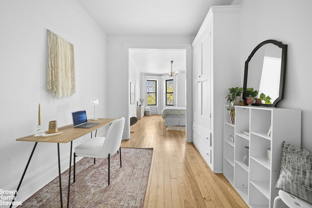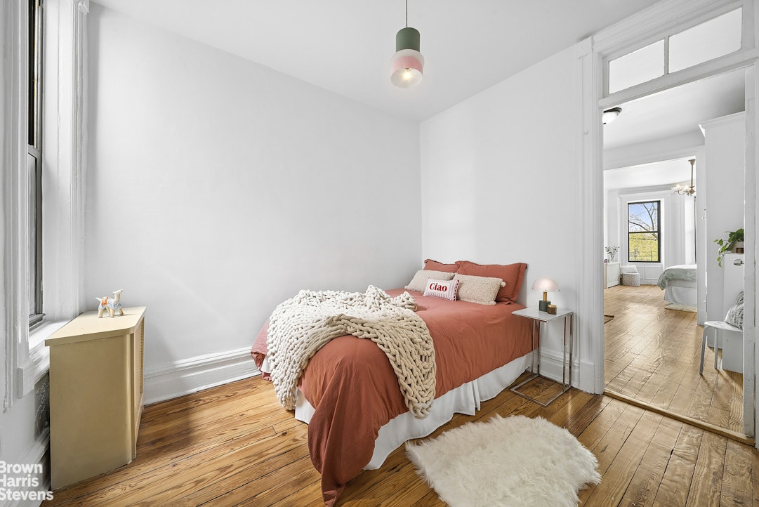 This bright and airy floor-through unit features 9+foot ceilings, original floors and millwork throughout and a flexible layout. The primary bedroom is the jewel of this special home with its incredible natural light and period details and comprises a bonus room that is perfect as a home office or dressing area. The second bedroom includes an original built-in dresser and fits a queen-size bed. The windowed kitchen is set on the back of the apartment, as well as the living room, and features full-size stainless-steel appliances, including a dishwasher. To make this residence even more special, the unit comes with private roof rights: take in stunning, unobstructed views of the Manhattan and Brooklyn skylines from your exclusive vantage point above the city.