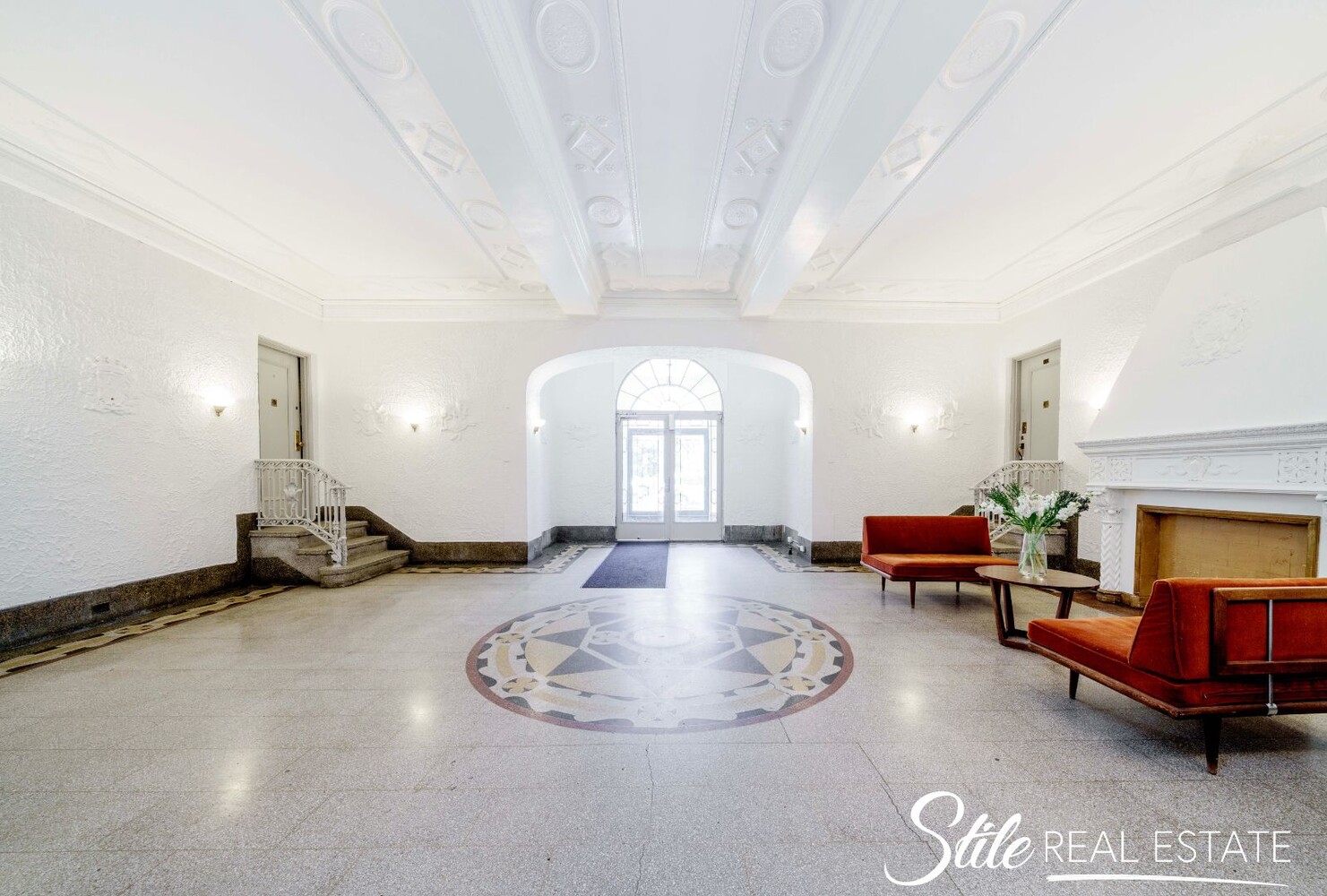 Welcome to this charming one-bedroom home featuring high ceilings and beautiful hardwood floors throughout. The original wood trim around the windows and doors has been carefully restored, adding warmth and character, while the front door and hallway cabinet showcase their original exposed metal details.