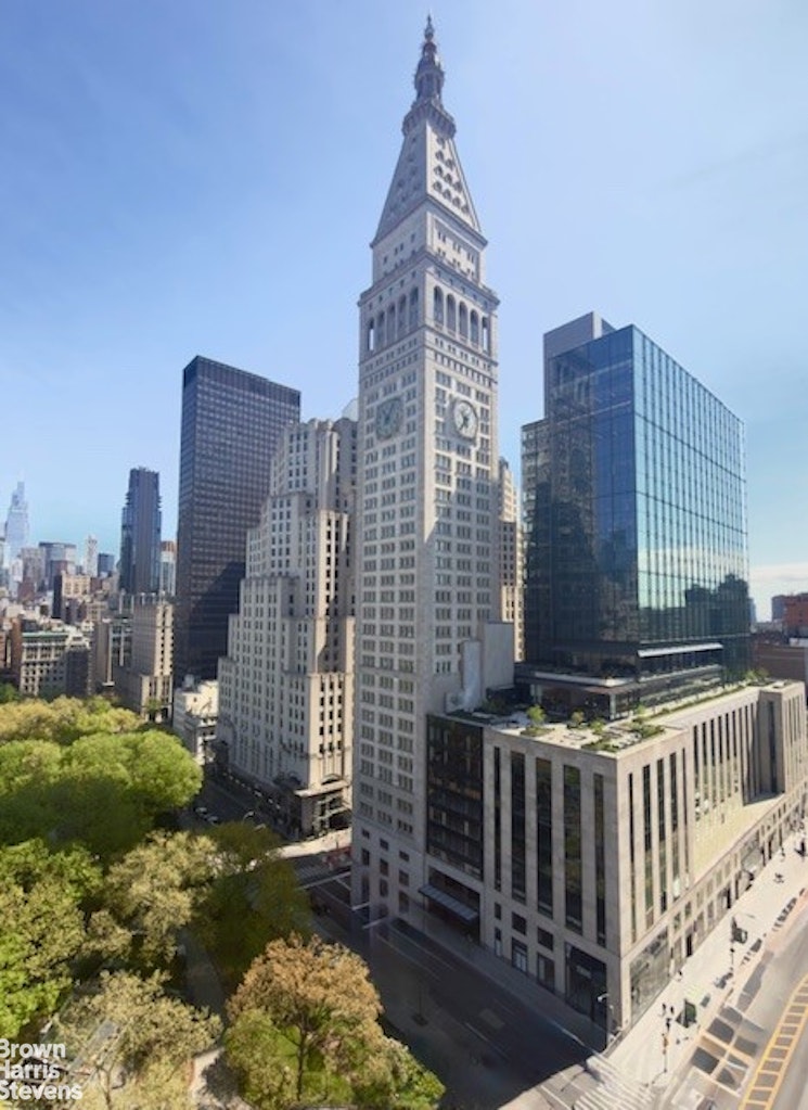 Welcome to Madison Green Condominium perched on the South side of Madison Square Park. Enjoy spectacular protected park views overlooking Madison Square Park with direct views of the Empire State Building, MetLife Clock Tower and beautiful landmarked architecture in all directions.... This N&E corner renovated home is surrounded by windows boasting beautiful light throughout. The foyer is spacious with good storage and a powder room. A very spacious open-style kitchen and living areas are perfect for entertaining including a balcony to enjoy amazing sunsets and cocktails. There's an office nook off the living area that can be closed off by glass doors for privacy. All finishes are stylish and beautifully presented. The primary bedroom has a balcony overlooking the park and a very large closet area. The second bedroom can become a home office or baby nursery. On the hallway you have a very nice spa-like full bath with a walk-in shower and walls of beautiful Bisazza tiles. The third bedroom suite at the opposite side of the apt is prefect for guests or children.