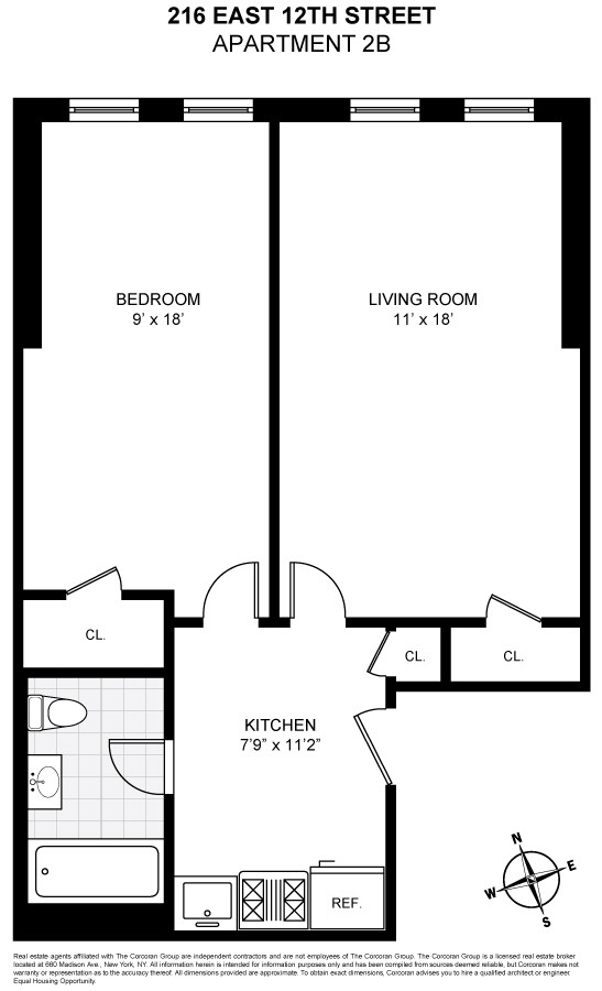 Welcome to your new home at 216 East 12th Street, Unit 2B, nestled in the vibrant and eclectic East Village! This delightful one-bedroom coop offers an inviting blend of modern convenience and pre-war charm with its high ceilings and good condition throughout. The unit features spacious rooms, including a comfortable bedroom and a well-appointed bathroom that ensures both style and functionality. Discover a warm and welcoming living room, an ideal space for entertaining guests or enjoying a quiet evening at home. The kitchen, in very good condition (new oven and refrigerator), is ready to inspire your culinary adventures. With large windows and a north-facing exposure to a pretty tree-lined street, the home is light, quiet and cheerful. You will find a peaceful environment that lets you unwind after a day in the bustling city. The window AC unit ensures your comfort during the summer months.