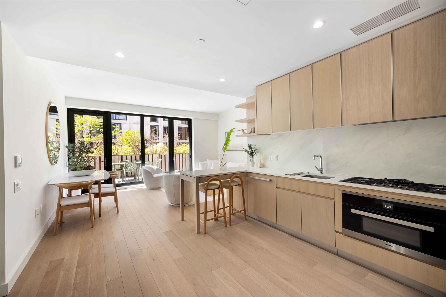 The home boasts floor-to-ceiling windows, filling every corner with natural light and framing captivating views of the city or Bloom’s iconic garden courtyard. The chef’s kitchen features custom cabinetry, marble countertops, and premium appliances. The spacious primary suite includes a walk-in closet and an ensuite spa-like bathroom, while the second bedroom offers endless possibilities.