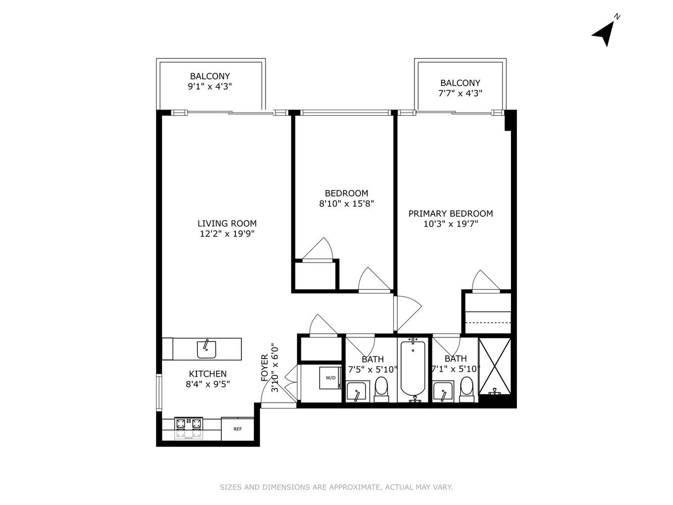 The split-bedroom layout just works. The primary suite is spacious, with its own private balcony and en-suite bath. The second bedroom is ideal for guests, a home office, or both. Both bathrooms are crisp, modern, and well designed.