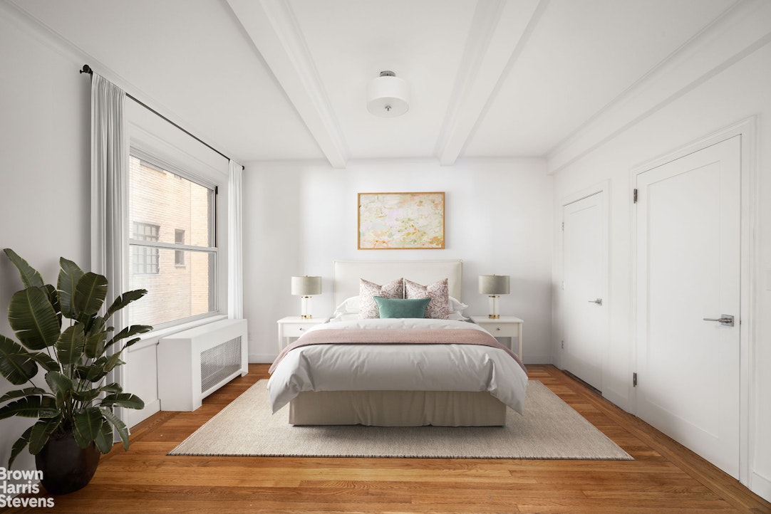 The building is a well-maintained, 16-story prewar co-op with full amenities including a 24-hour door attendant, live-in super, brand new windowed gym, bicycle room, laundry room, and a planted rooftop garden complete with lounge chairs and tables. Storage is available for a nominal fee.