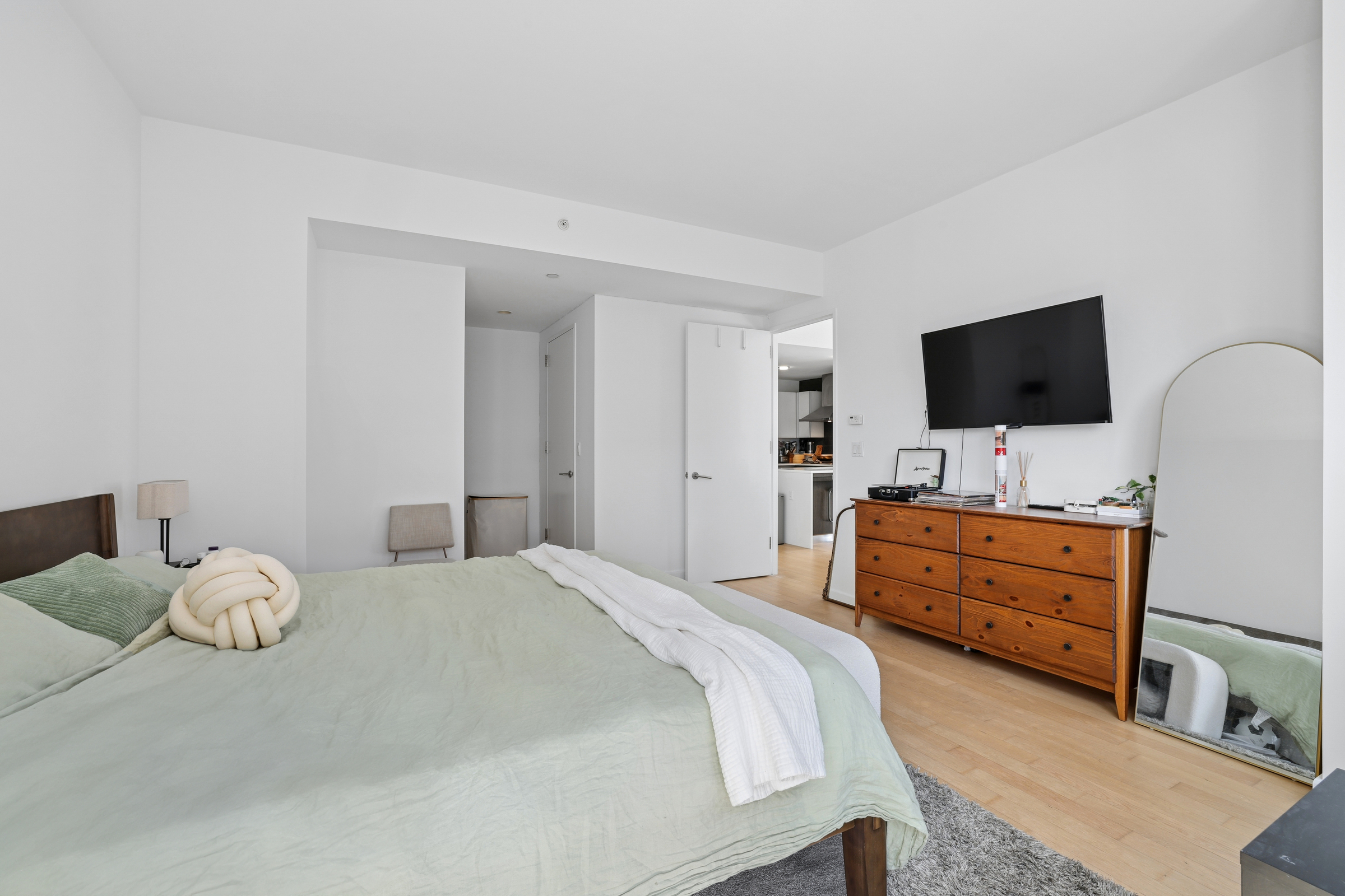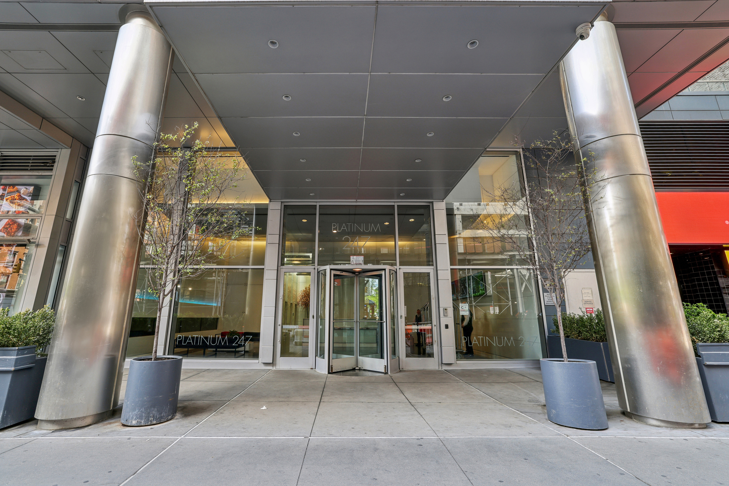 • Positioned on the 22nd floor, Residence 2204 is a bright corner one bedroom, one and a half bath home with open city views and a thoughtfully designed layout for both living and entertaining. Wrapped in floor-to-ceiling windows, the corner living space benefits from south and west exposures, bringing in strong natural light throughout the day and offering open skyline views. The living and dining area flows seamlessly into a sleek, open kitchen outfitted with high-end stainless steel appliances, tempered glass finishes, and ample cabinetry. A proper entry foyer creates a natural sense of separation and leads to a private bedroom suite tucked away from the main living space. The primary bath is finished with refined stonework and a deep soaking tub, while a powder room adds convenience for guests. Additional features include hardwood flooring and an in-unit washer and dryer. The Platinum is a full-service condominium offering 24-hour doorman and concierge service, along with a full floor dedicated to wellness and lifestyle amenities. Residents enjoy a state-of-the-art fitness center, yoga studio, golf simulator, spa lounge with sauna and treatment areas, massage and recovery spaces, and a resident lounge with billiards. An outdoor terrace, cold storage, bicycle storage, valet services, and on-site parking further enhance daily living. Located in the heart of Midtown, moments from the Theater District, Restaurant Row, Bryant Park, and Central Park, and just off Times Square, the building offers immediate access to some of the city’s most iconic destinations while still providing a sense of separation from the energy of it all. Convenient access to the 1, 2, 3, 7, N, R, W, Q, A, C, and E subway lines makes getting anywhere in the city simple.