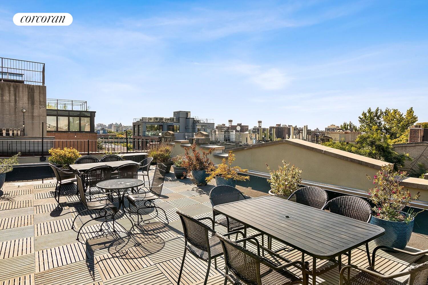 Upstairs, residents share a rooftop with sweeping 360-degree views-perfect for morning coffee or evening sunsets. Other building perks include caged storage (available for a small monthly fee), a bike room, stroller and scooter storage, a card-operated laundry room, and video intercom. Pets are welcome in this close-knit community of 25 units.