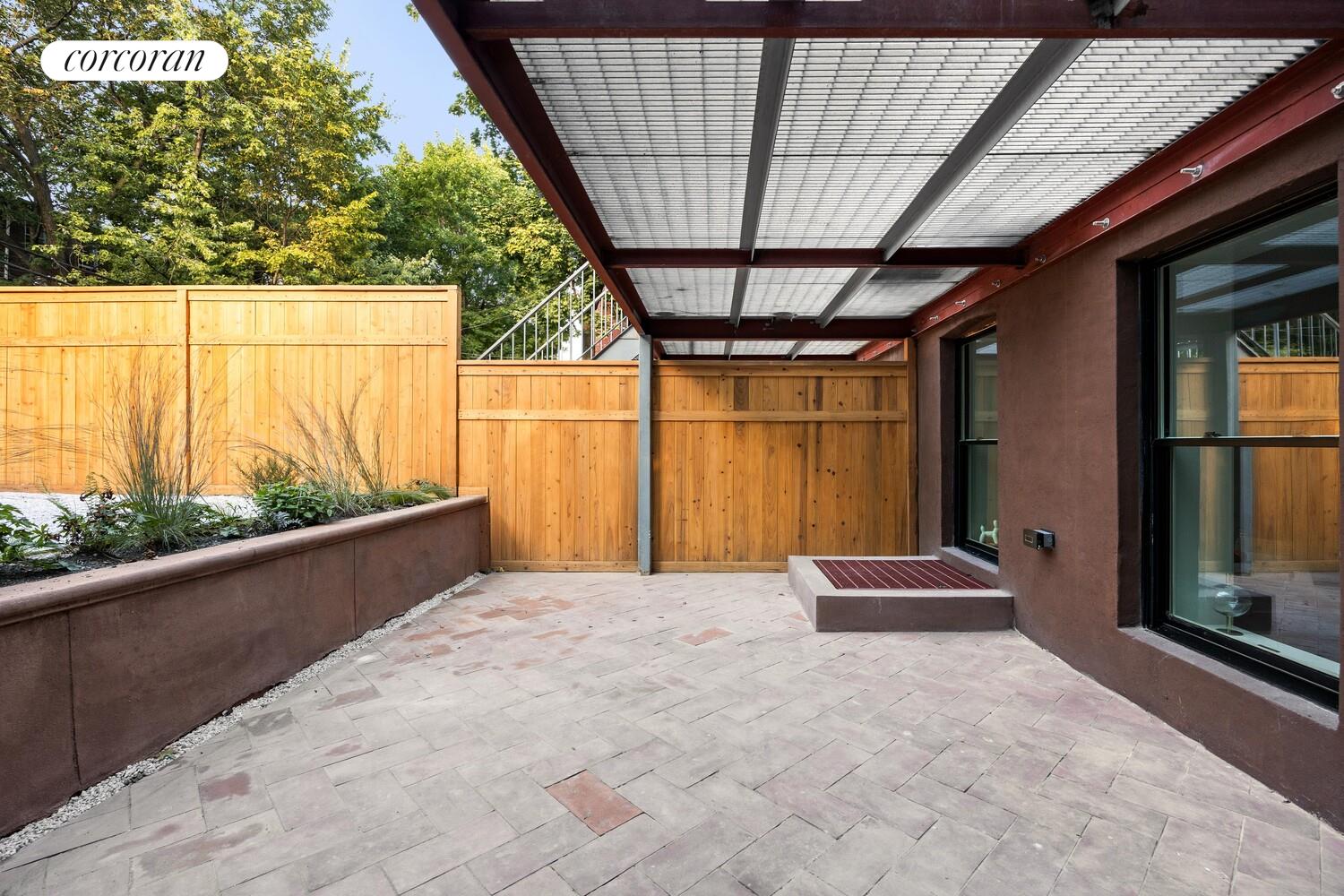 A masterful transformation has been achieved through the use of timeless materials and details that will appeal to any aesthetic down to every last detail. Come home to a brick house flooded with light all day that includes a classic stoop, all new black framed wood windows, central AC, herringbone white oak floors, all new bathrooms and kitchens, great closets, and an incredible garden and deck perfectly accessible from the dining and kitchen area. Head up the stoop to a parlor floor with soaring ceiling heights, a large chef's kitchen, a sizable living room, and the perfect spot for a large dining table adjacent to the kitchen. Entertaining is a breeze in the Danish-modern inspired kitchen with rustic white oak cabinetry, unlacquered brass fixtures, an island with Calacatta Gold countertops, and a cream Zellige backsplash. Pantry space is abundant, and paneled Bertazzoni and Fisher and Paykel appliances complete the picture. A suite of designer wall sconces, recessed task lighting, and abundant natural light flooding through the wall of sliding glass doors off the deck make this the kitchen you would have custom designed yourself except you don't have to! Even the garden has been transformed through the use of white river stones and terra cotta pavers surrounding a wood platform illuminated by outdoor lighting, perfect for al fresco dining, and just the right amount of perimeter planting to indulge your green thumb.