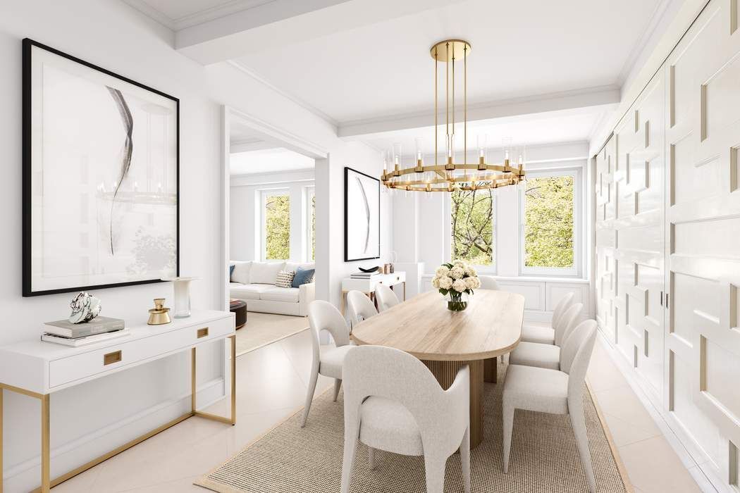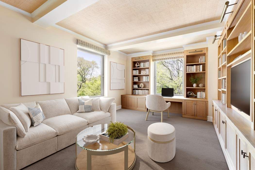 EXCEPTIONAL VALUE ON FIFTH AVENUE! With the three main public rooms directly facing Central Park, this sprawling 4-5 bedroom home is only $1,300 per square foot, making it the best deal in the neighborhood. Stunning Central Park views over Fifth Avenue, spectacular sunlight, and a gracious layout on a grand scale define this breathtakingly beautiful 3,700+ sq ft, one-of-a-kind residence in a rare pre-war Emery Roth condominium on Museum Mile. With majestic Central Park as its backdrop through new tilt and turn picture windows and boasting an exceptional 39 linear feet directly on Fifth Avenue, experience the magic of New York City’s changing seasons from any one of the three principal rooms facing the park. The private elevator vestibule opens on to an impressive gallery with lovely travertine limestone floors flowing graciously into the wonderfully proportioned living room framed by show-stopping Central Park trees engulfing oversized windows and beamed ceilings. The living room sits adjacent to the elegant formal dining room, also with direct park views and adjoining the perfectly appointed eat-in kitchen, a chef’s dream with sleekcustom cabinetry, quartz stone countertops, enviable pantry storage, banquette seating for 6-8, breakfast bar, and top-of-the-line appliances including a 48” Sub-Zero refrigerator/freezer, Wolf 6-burner vented range, a second Wolf wall oven, Wolf microwave and warming drawer, Gaggenau steam oven, Miele dishwasher, and a butler’s pantry with a Sub-Zero wine cooler, an additional sink, and an appliance garage. The sundrenched and grand corner library, finished in artfully designed cerused oak paneled bookshelves and desk, boasts southern and western exposures into Central Park and an ensuite full bathroom, offering versatile use of space, perfect also as a guest bedroom or a fifth bedroom. The dramatic bedroom corridor is lined with enviably large closets and offers privacy and separation from the public space. The double-sized primary bedroom is an urban sanctuary, featuring both oblique Central Park views as well as sunny southern exposures and a huge ensuite bathroom with double vanity, tub, and separate glass stall shower. Two generously sized south-facing bedrooms share a renovated bathroom and the fourth occupies a corner at the end of the hall with open views facing north and an ensuite bathroom with tub shower. There is a bonus room currently set up as an office, but which could easily function as a media room or an additional guest room. Finally, there is a windowed laundry room, the size of which is rarely seen in a city apartment, featuring an oversized Electrolux washer and vented dryer, a second Sub-Zero fridge and freezer, custom cabinetry and storage, and a wall of windows. Rounding out this special home is an astounding 13 closets, most outfitted by California Closets, multi-zone heating and cooling, Sonos sound system, Lutron lighting, and classic architectural details. The residence has been freshly repainted, ready for you to move right in. A private storage unit conveys with the apartment. Nestled among world-famous museums, educational and cultural centers, restaurants, shopping, and multiple modes of transportation, this exceptional full-service luxury condominium, representing the best of the renowned architect Emery Roth, is a rarity on Fifth Avenue and sits moments from the Conservancy Gardens and the reimaged Harlem Meer and Lasker Rink, the capstone project of the Conservancy’s 40-year campaign to restore Central Park. Building amenities include a 24-hour doorman, bike room, laundry room, private storage room, walk-in storage refrigerator, state-of-the-art fitness center and a live-in superintendent. Pets are case by case. This gorgeous apartment truly feels like a home!