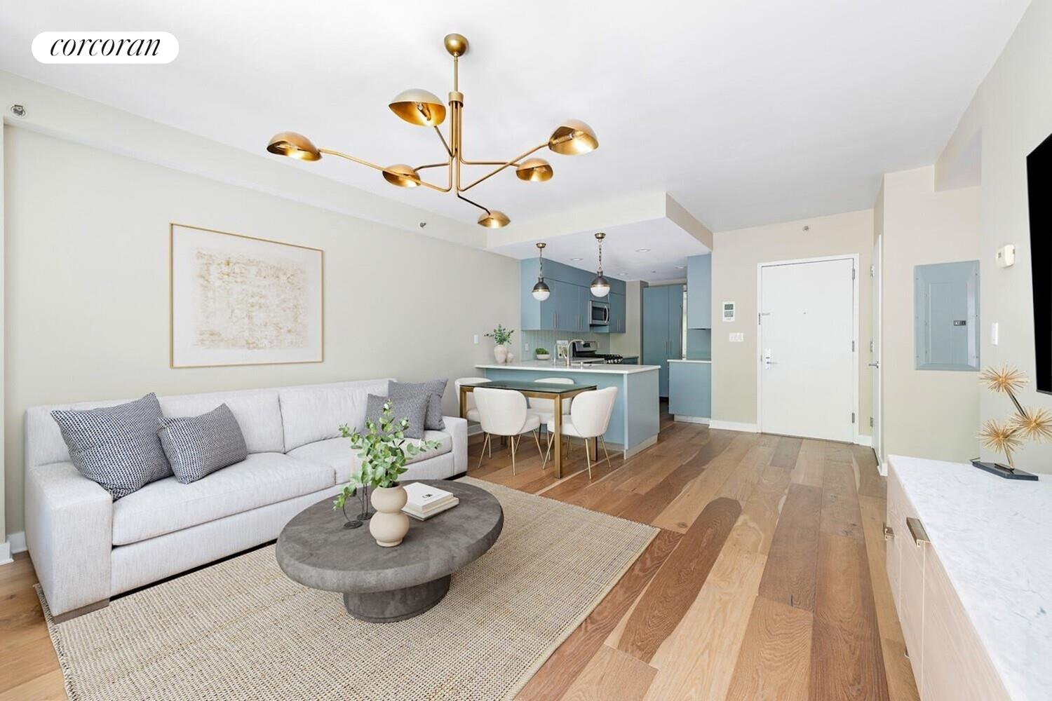 Recently and thoughtfully renovated, the residence boasts 6-inch wide-plank wood flooring, new custom lighting, refinished kitchen cabinetry.