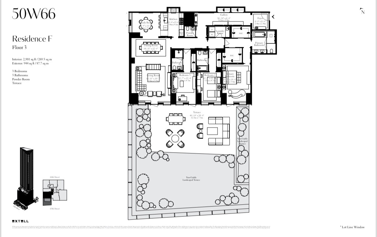 House residence 3F is a gracious 2,901 square foot, 3-bedroom 3.5 bath home with a large 944 square foot terrace. This South/West facing apartment can be shown by private appointment.