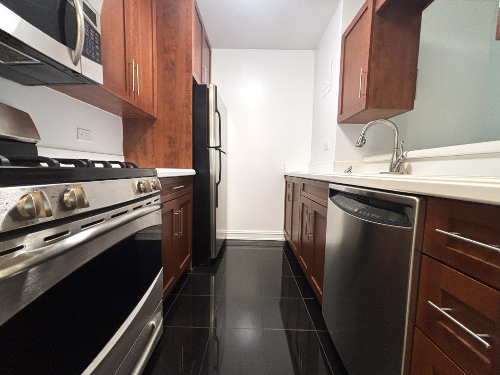 Renovated kitchen has with dishwasher and microwave oven. There is ample closet space throughout. Supermarket, shops and tons of dining options are nearby. The building is one block from the Q-train.