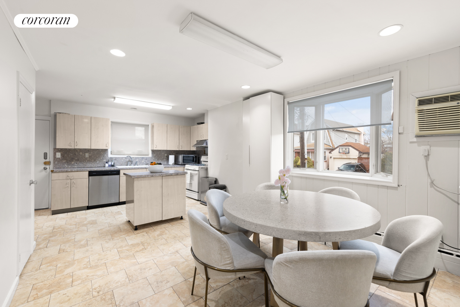 The fully finished basement with windows offers incredible versatility, including a large playroom, an additional spacious room, a bathroom with a shower, a laundry room, and ample storage space. With high ceilings and a separate exit to the street, this space  can easily be used for recreation, guests, or as a home office.