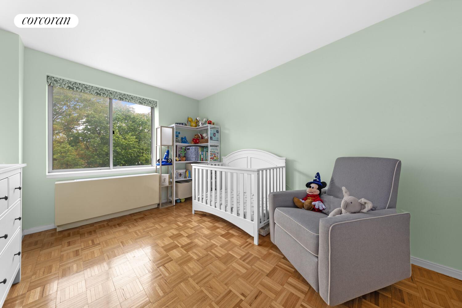Own this thoughtfully maintained 2-bedroom, 1-bathroom at The Hamilton, a doorman condop built in 2003. Perched on the 4th floor, the unit faces the verdant expanse of Jackie Robinson Park with floor-to-ceiling windows in the living room that flood the space with natural light.