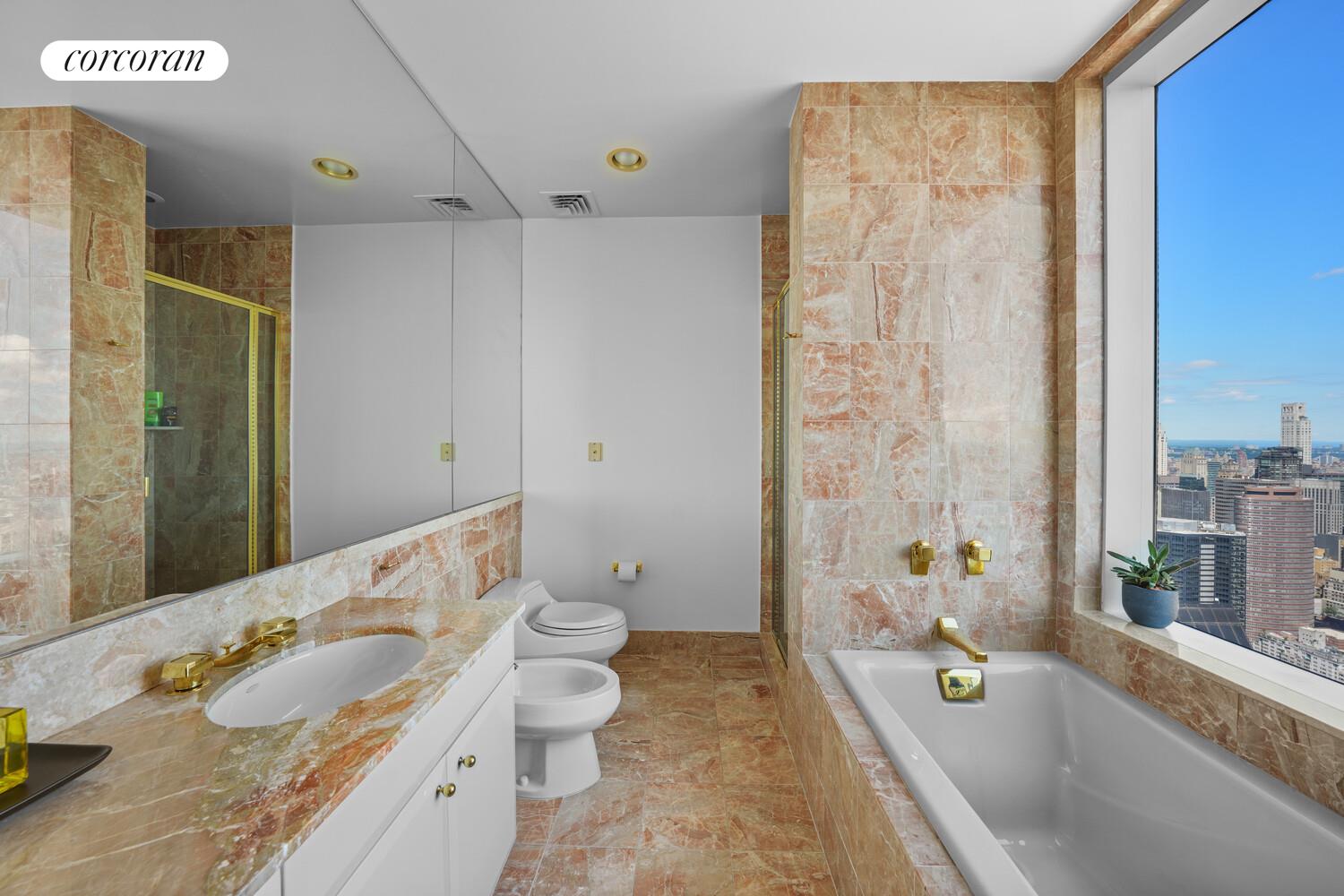 One of only four exclusive E-line homes, this flexible layout easily converts to three bedrooms. The residence features two spacious en-suite bedrooms, a third full bathroom, and an optional third bedroom configuration. The primary suite boasts three large closets and a spa-inspired bath with a soaking tub, glass-enclosed shower, bidet, double vanity, and a window overlooking the NYC and the Queens' skyline.