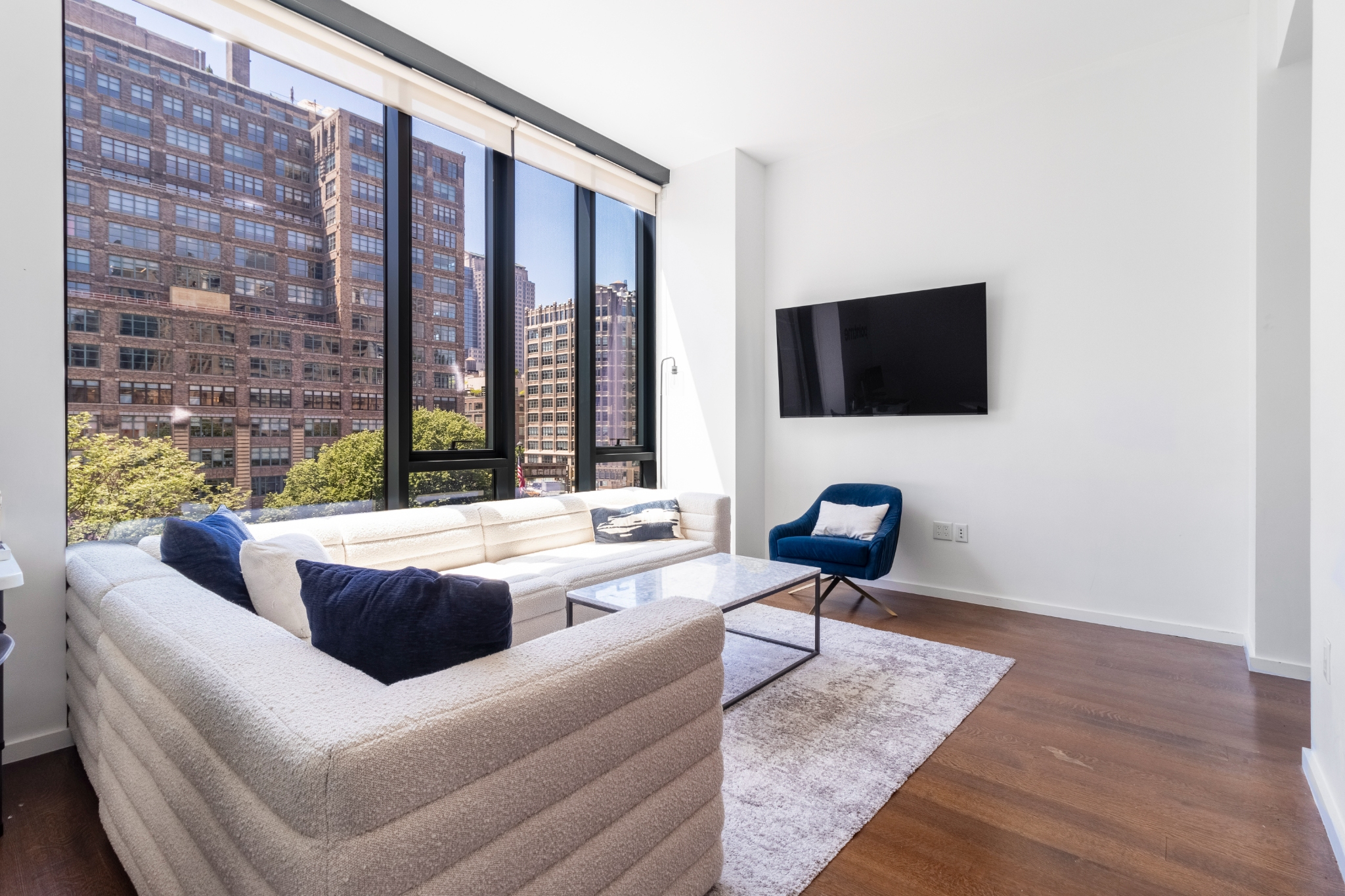 South facing 1 bedroom, flooded with natural light! 570 Broome is a collection of 54 new construction luxury condominium residences with iconic New York City views that draw inspiration from the history and style of West SoHo. From acclaimed architect Tahir Demircioglu, with impeccable interiors by Skidmore, Owings and Merrill, the design references the area’s industrial past via soaring 11 foot ceiling heights and a silhouette evocative of staggered cubes. Unit 6B includes a full Miele appliance package including dishwasher and garbage disposal. 4 pipe central AC gives you total climate control of your unit. Bathrooms feature calacatta marble walls, recessed medicine cabinets with built in lighting, radiant heated floors, and matte black zuchetti fixtures. The apartment features with natural wood white oak floors with a custom walnut finish, solid core white oak doors, and in unit washer dryer with ample custom built in storage Amenity areas at 570 Broome are designed to connect spaces as well as residents. The street level view of the back garden beckons from the moment of arrival. On the second floor, a private lounge with a game room opens onto a landscaped outdoor terrace. The spa features a massage room infrared and traditional saunas. The fitness center includes Peleton cardio equipment, Life fitness strength training equipment, and a yoga/boxing studio. Additional services include a 24-hour attended lobby, full time super and porter staff, indoor bike storage, and pet washing room. Currently tenant occupied on month to month basis, can be delivered vacant at closing.